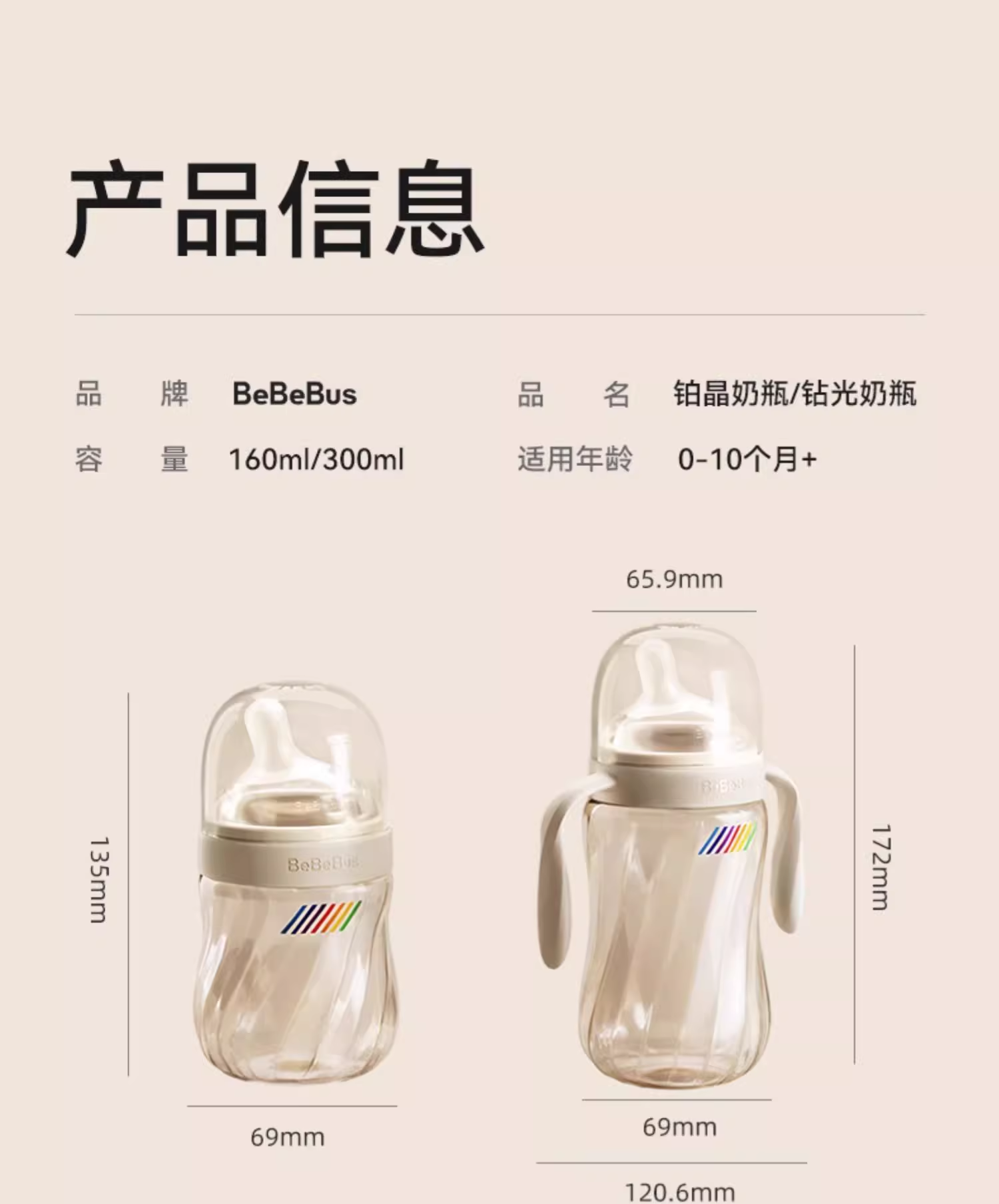 【刮码发货】BeBeBus铂晶钻光奶瓶ppsu新生婴儿防胀气0-3-6个月以上