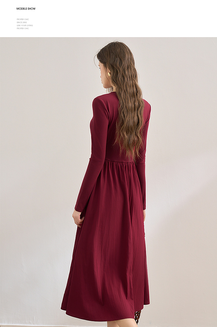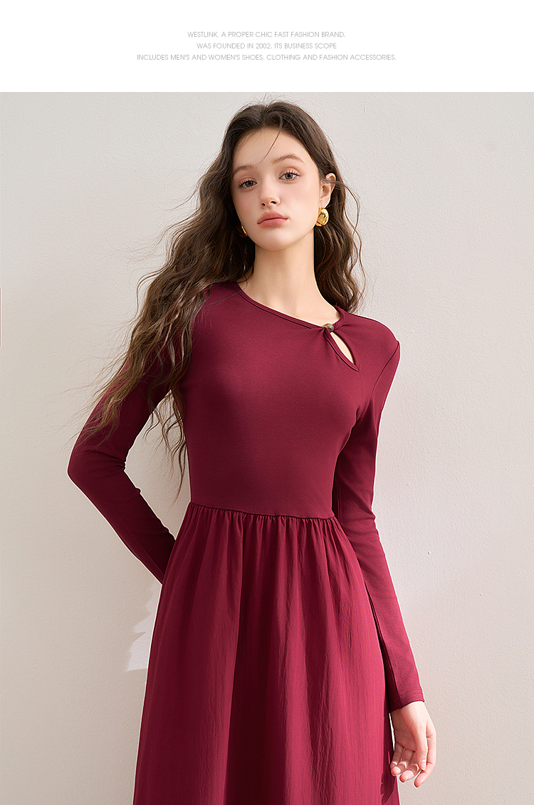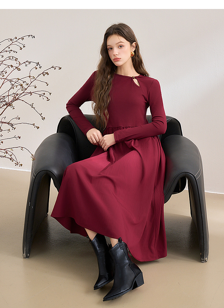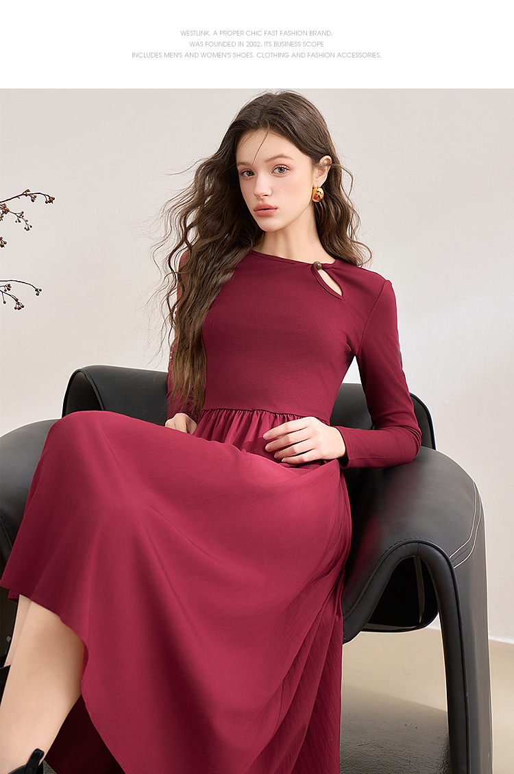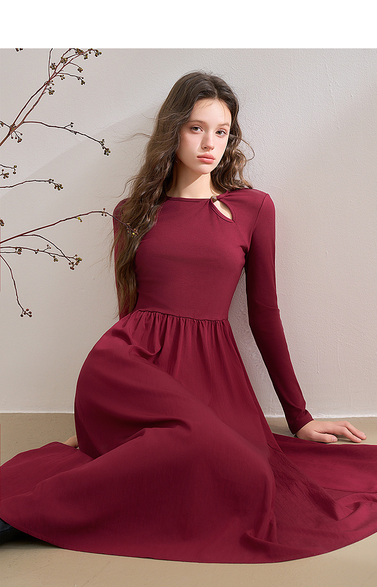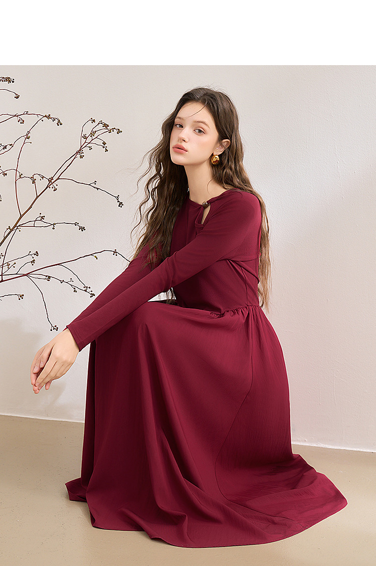 【灼灼红莲】新中式国风镂空领连衣裙女古典长裙V0350205