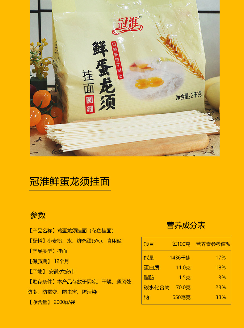 「4斤装!鲜蛋龙须面」冠淮家庭挂面干面条手工拌面煮汤面条细面龙须鸡蛋面粮油米面