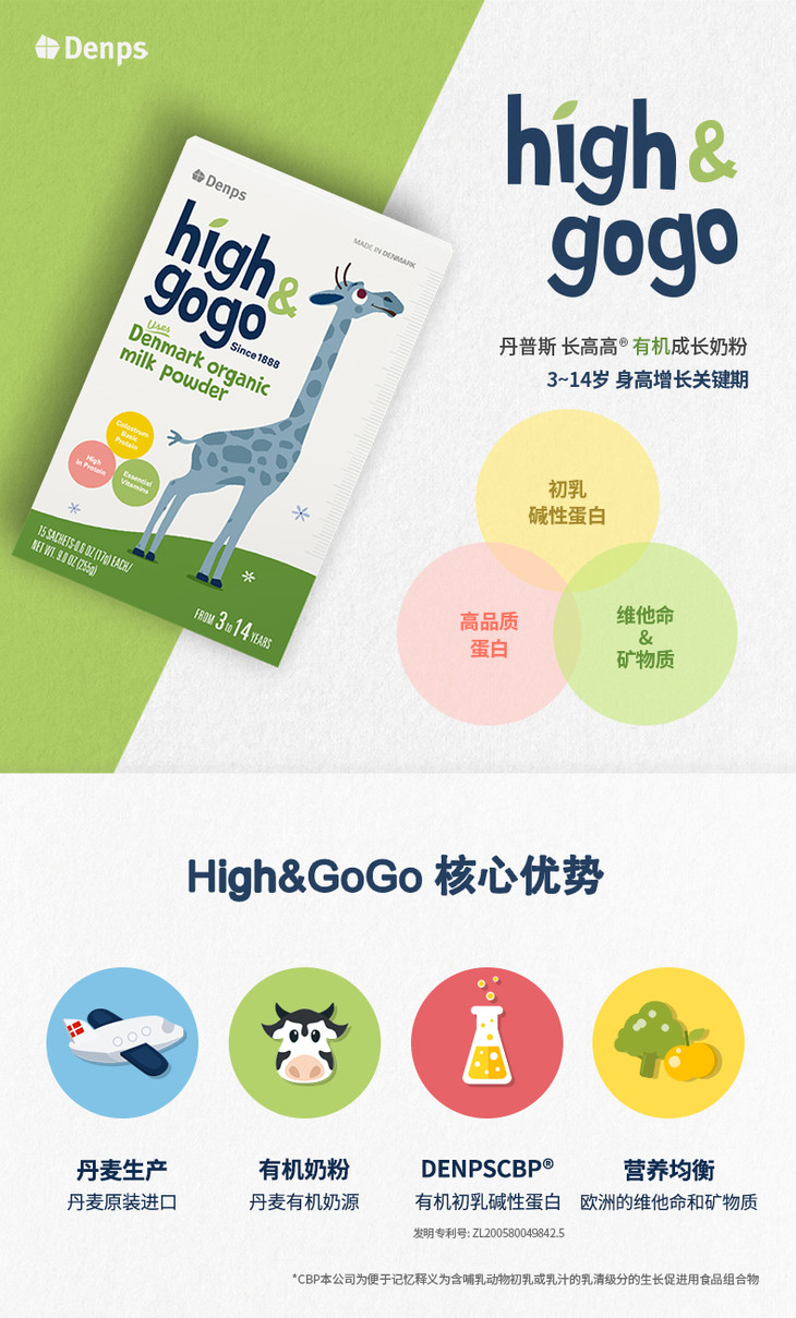 丹普斯长高高有机儿童配方调制乳粉