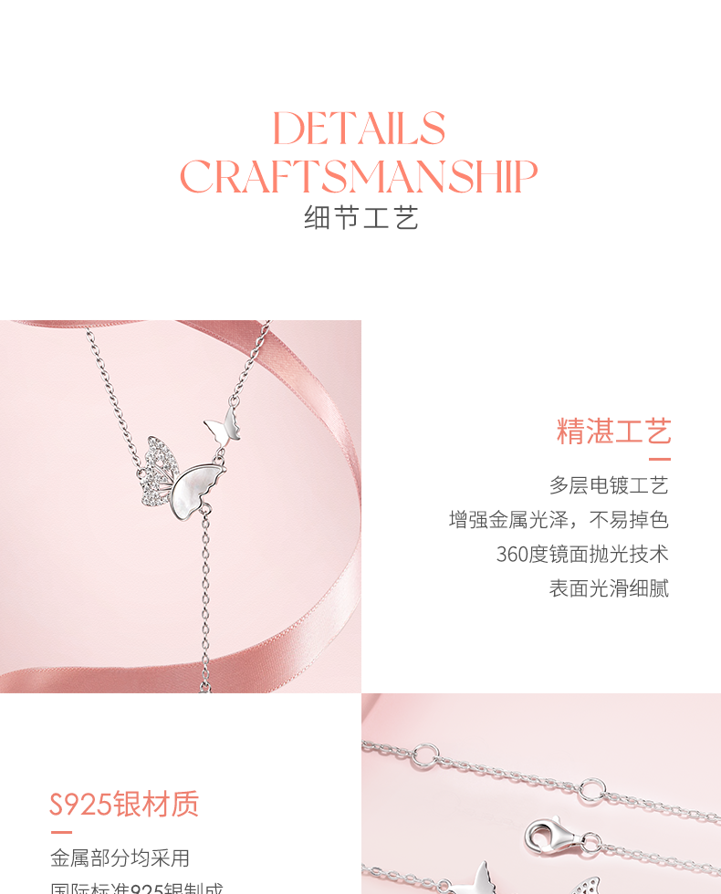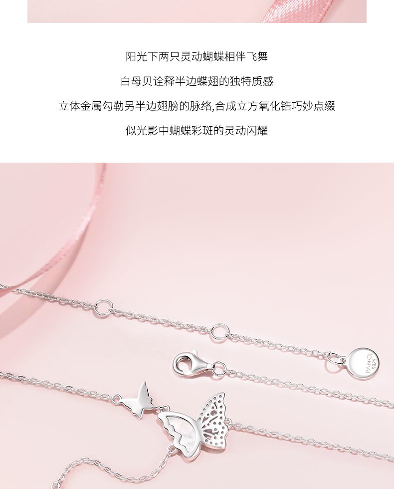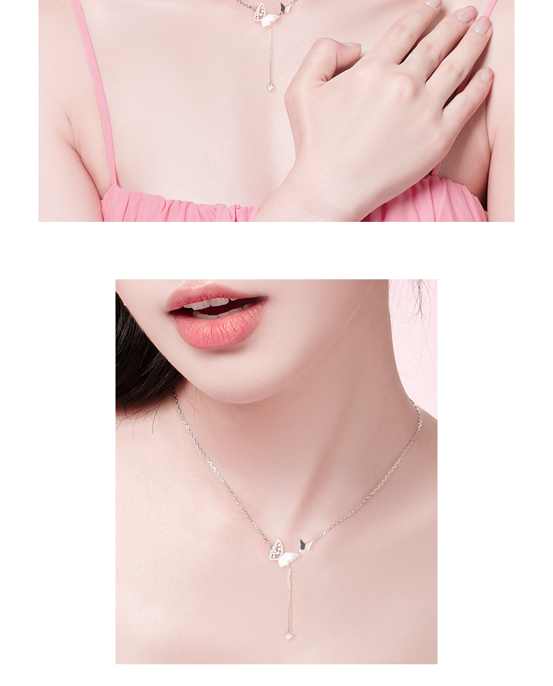 Fanci范琦 光影蝴蝶项链女款蝴蝶贝母银项链锁骨链送女友生日礼物