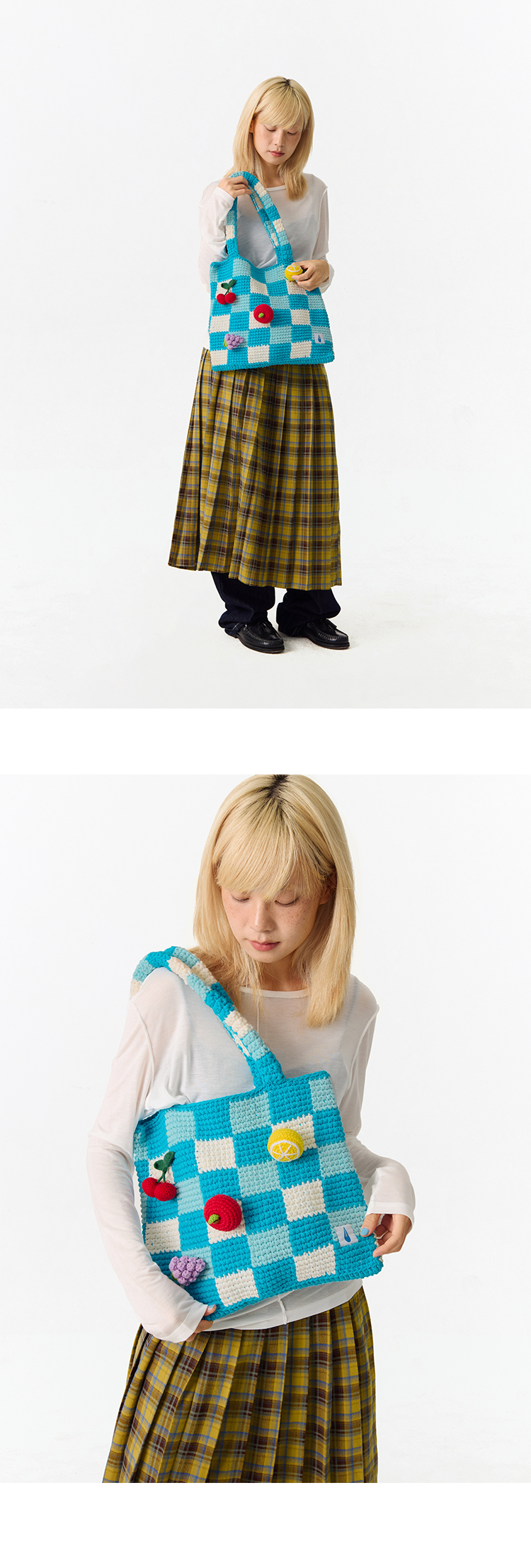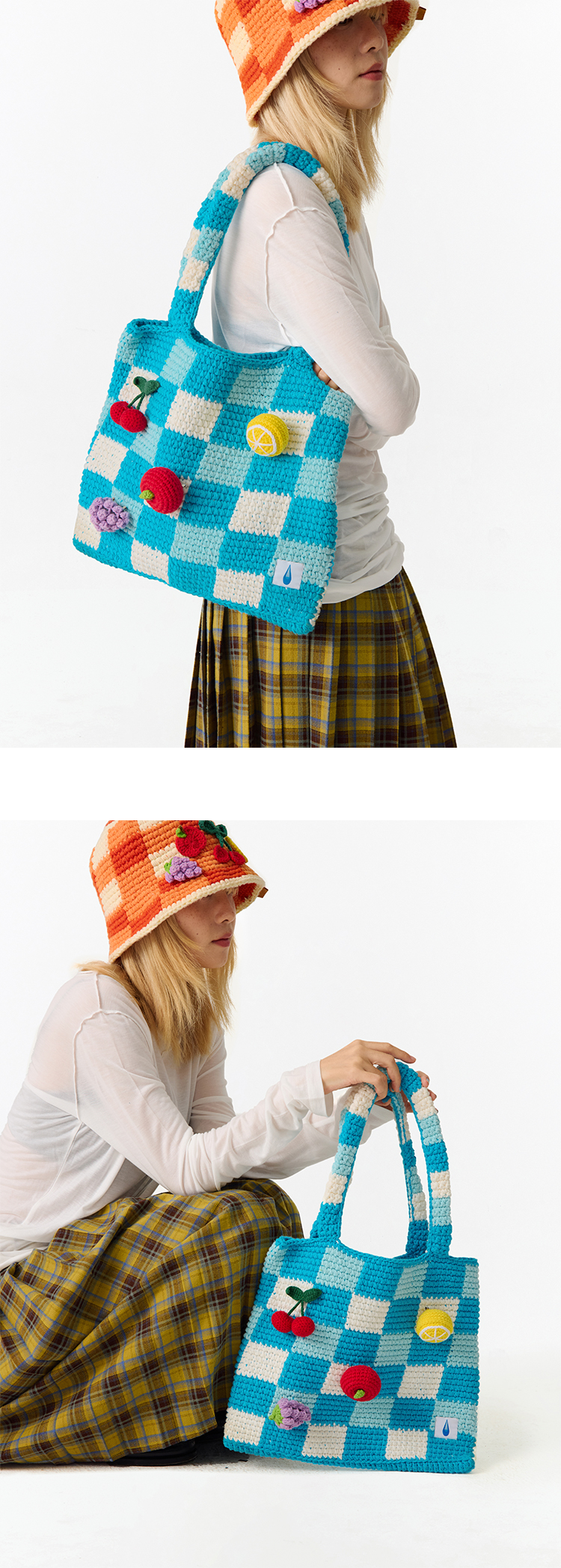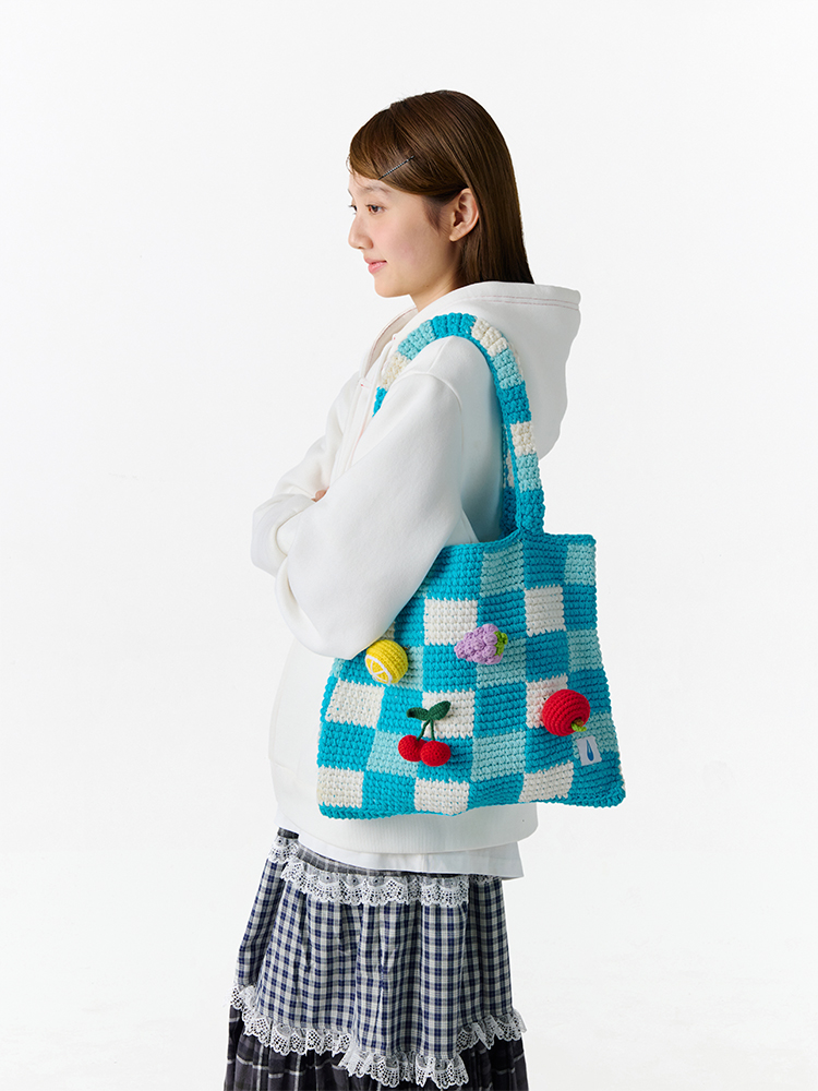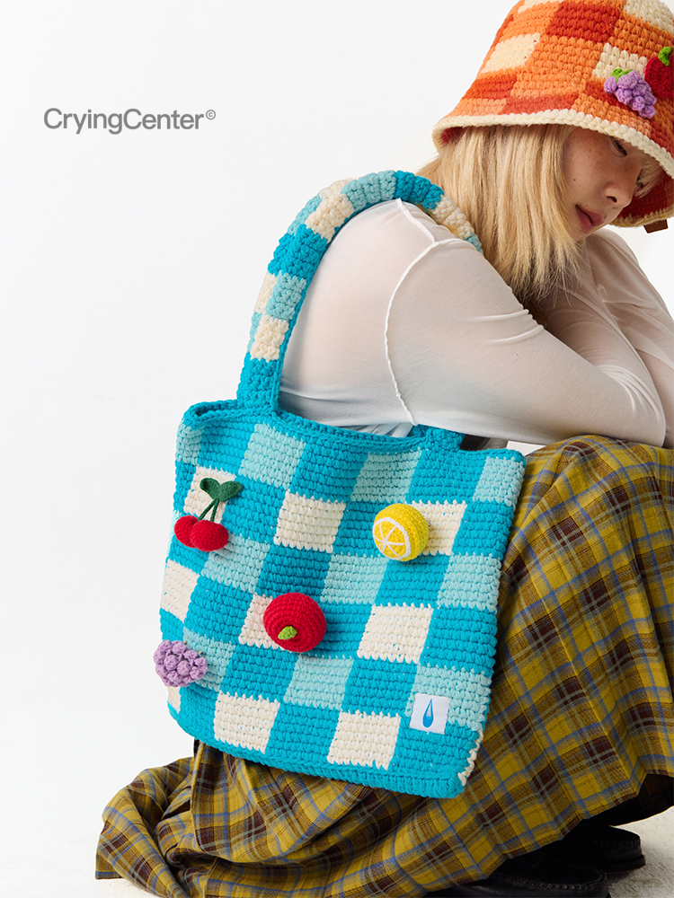 CryingCenter 水果立体钩针格纹托特编织包单肩手提 哭喊中心