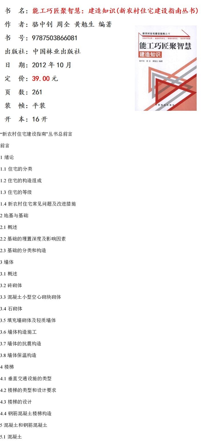 能工巧匠聚智慧 建造知识 新农村住宅建设指南丛书 骆中钊6608 墙体楼梯 楼地面及室外地面 屋顶 门窗及外墙面装修 中国林业出版社