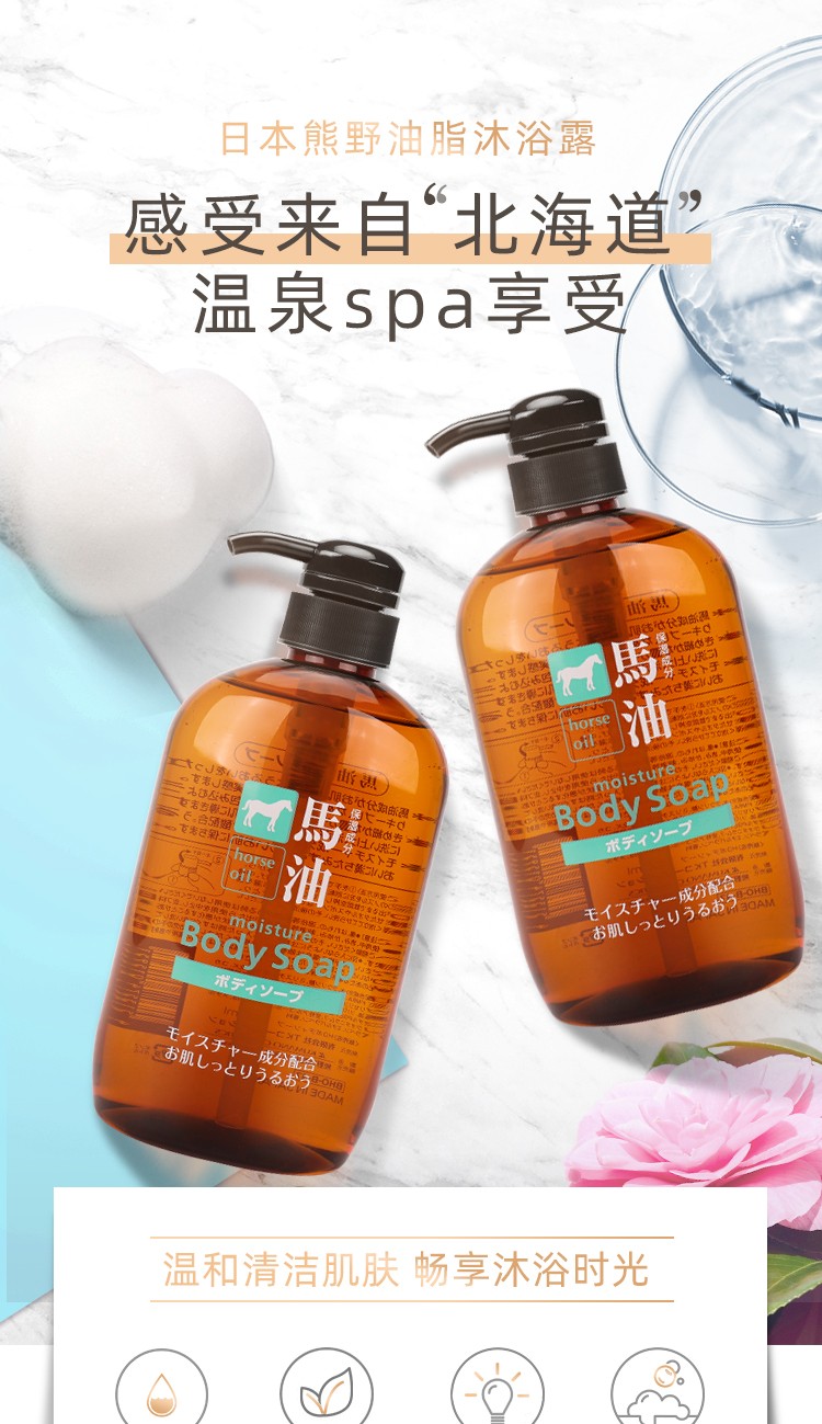 【3瓶装】熊野油脂无硅油马油洗发水护发素沐浴露套装 600ml*3瓶