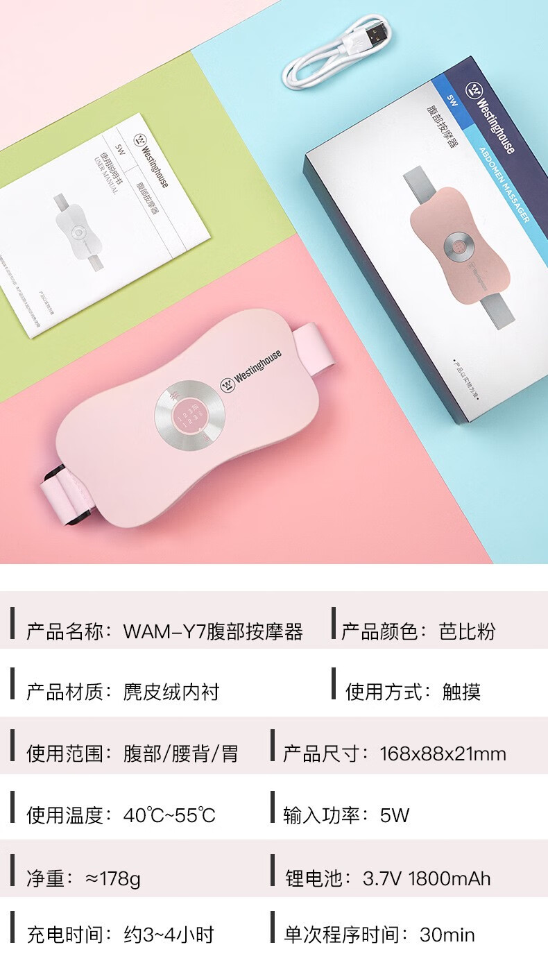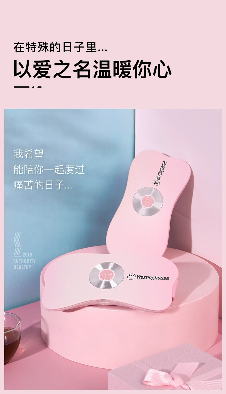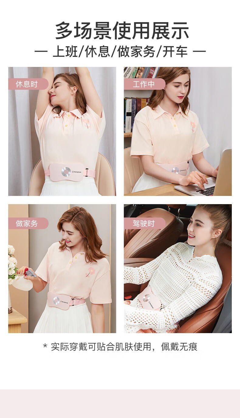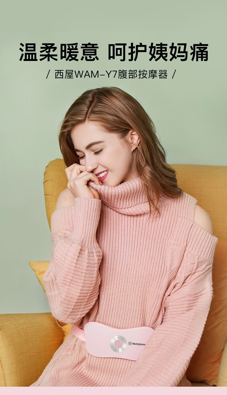 美国西屋(Westinghouse)加热腰部按摩器暖腰带暖腹部暖宫带腹部按摩仪WAM-Y7 莫兰迪粉