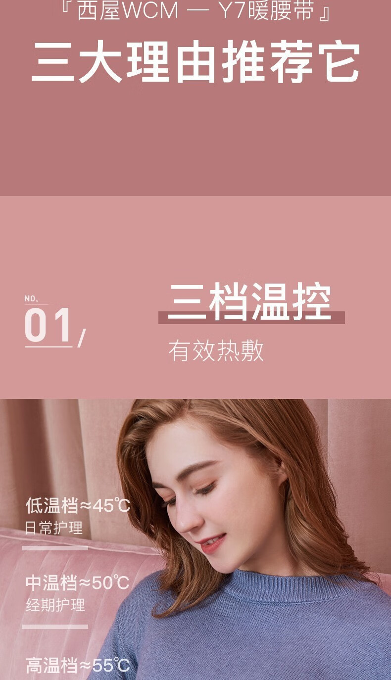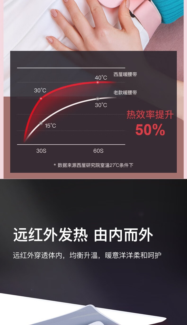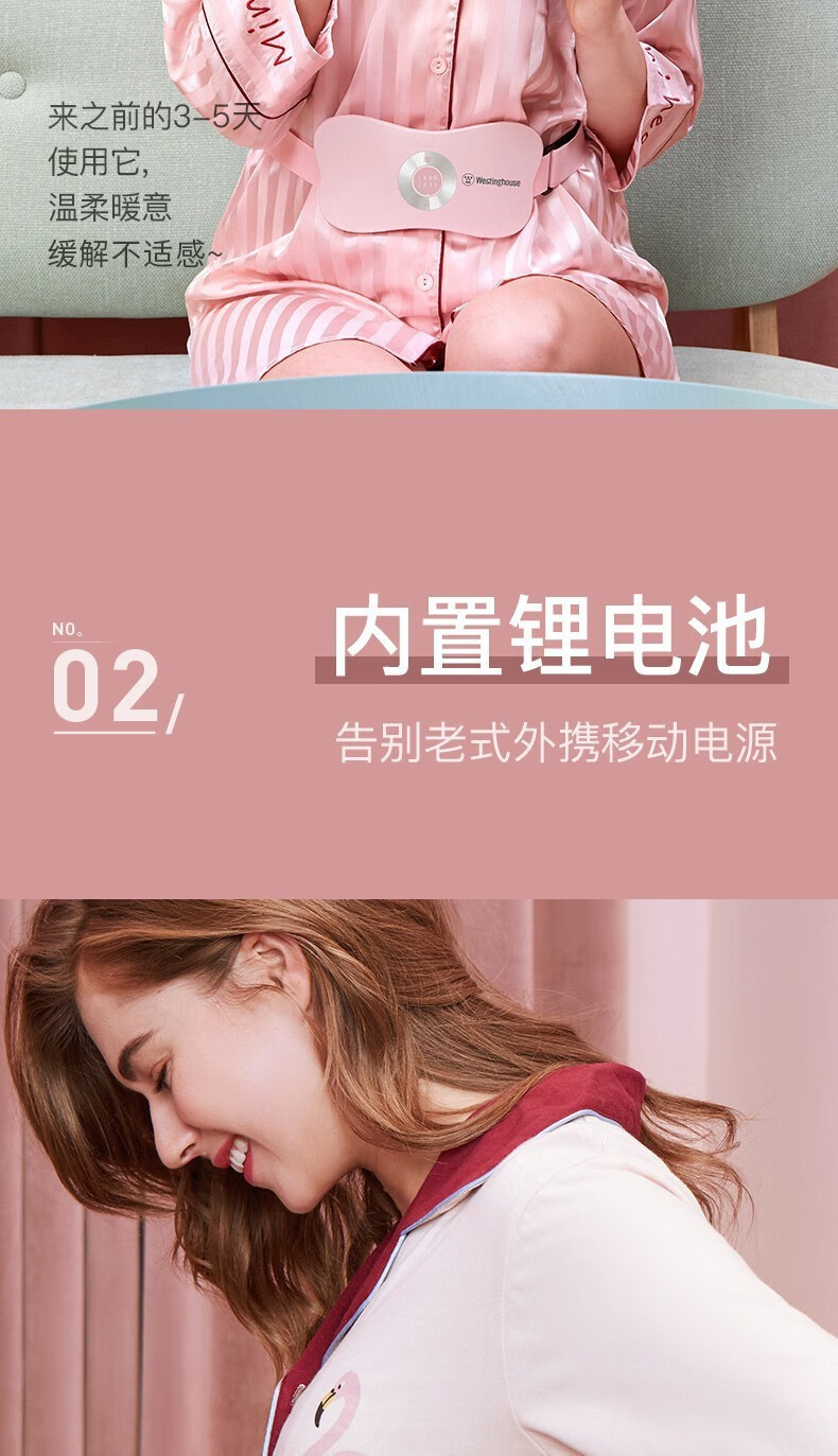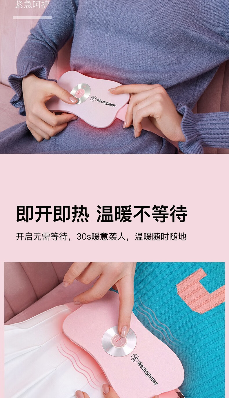 美国西屋(Westinghouse)加热腰部按摩器暖腰带暖腹部暖宫带腹部按摩仪WAM-Y7 莫兰迪粉