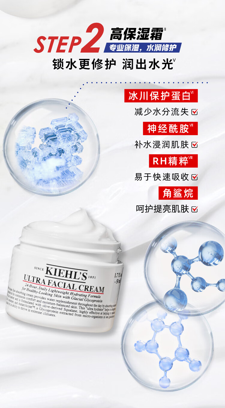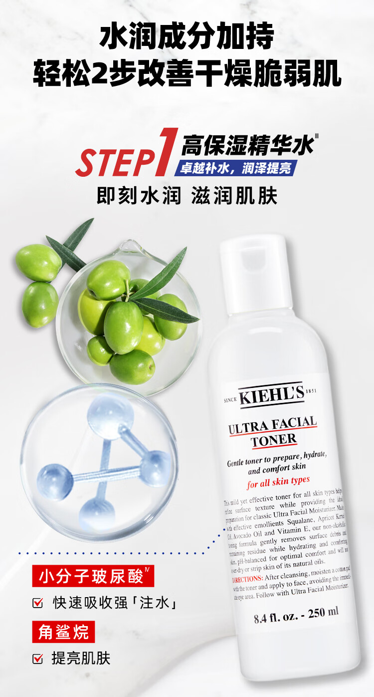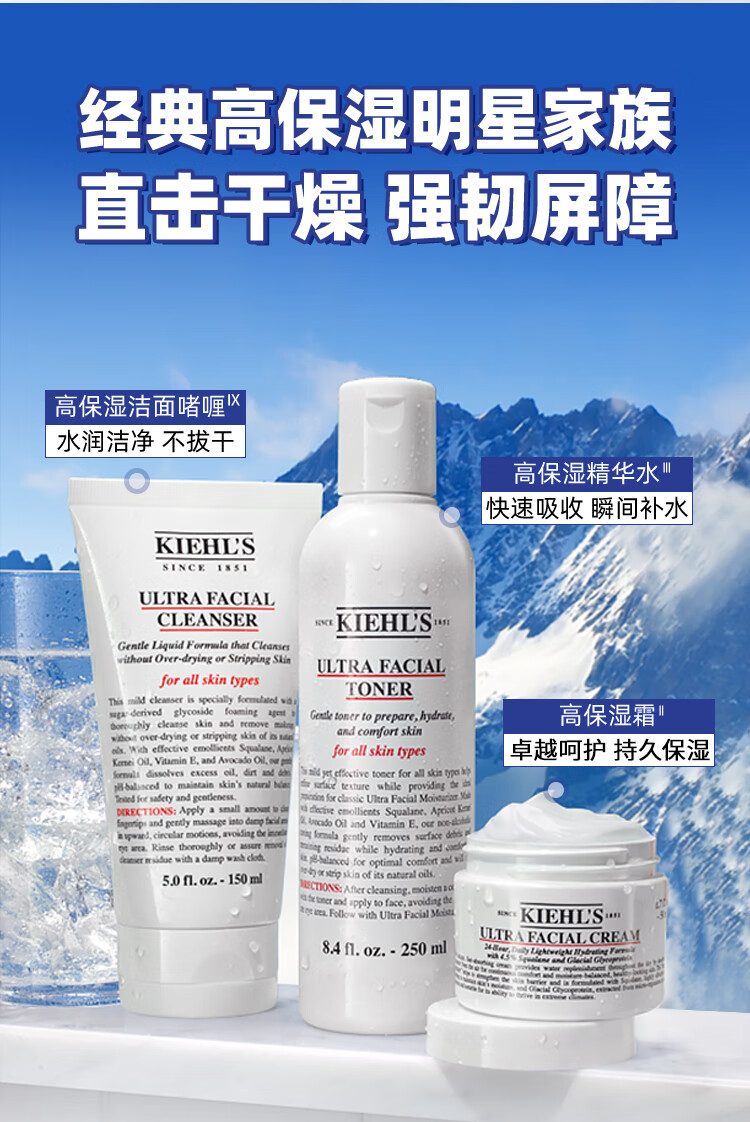 【精选包邮】正品科颜氏(Kiehl's)高保湿水乳套装 补水滋润修护面霜 心选到家