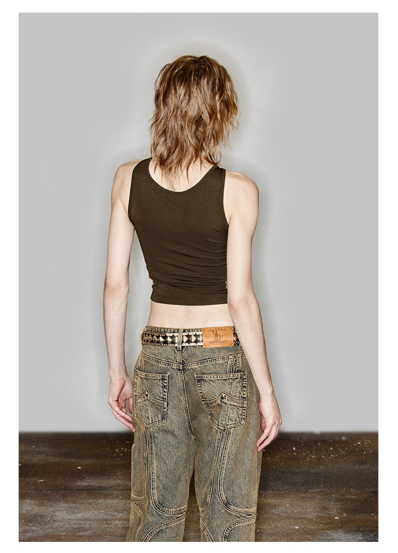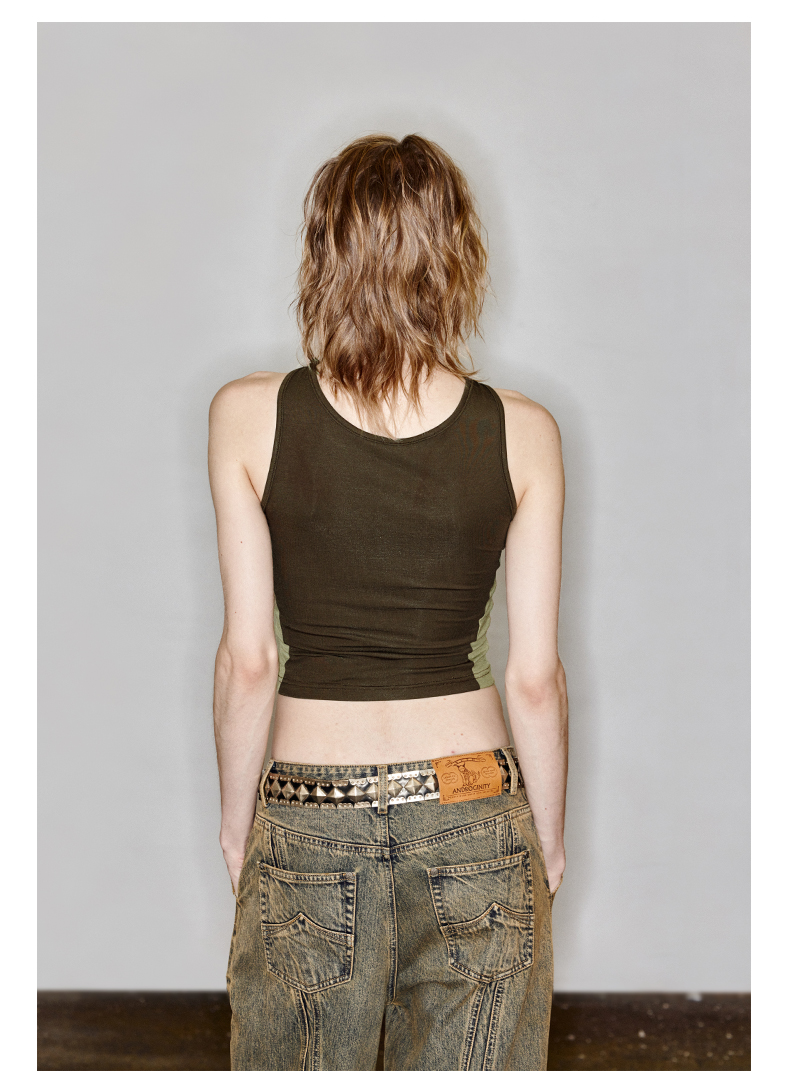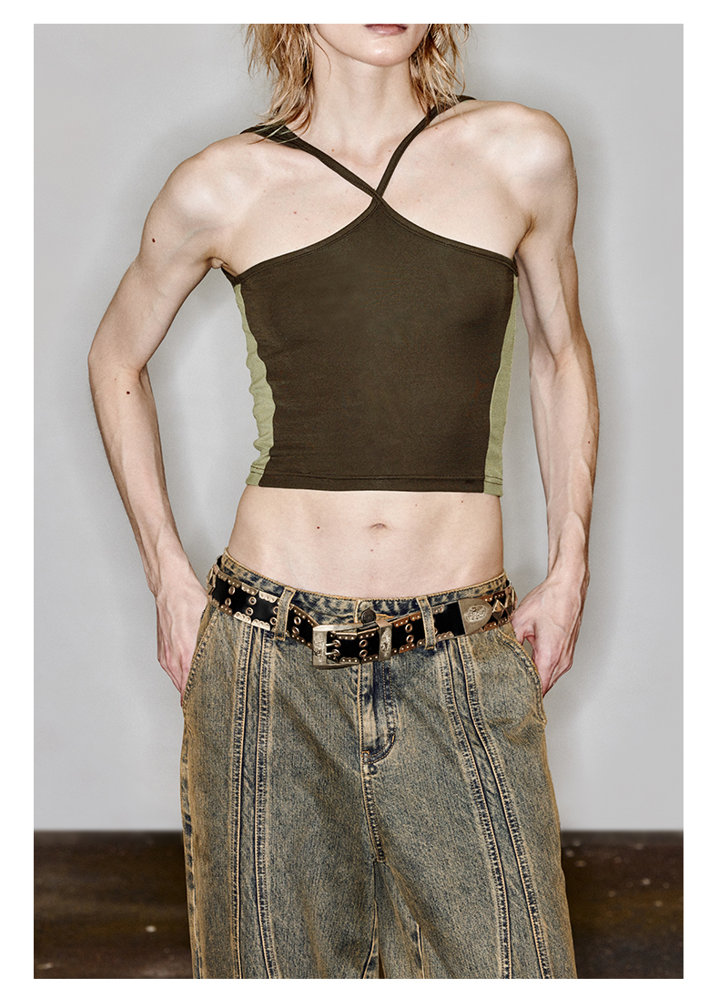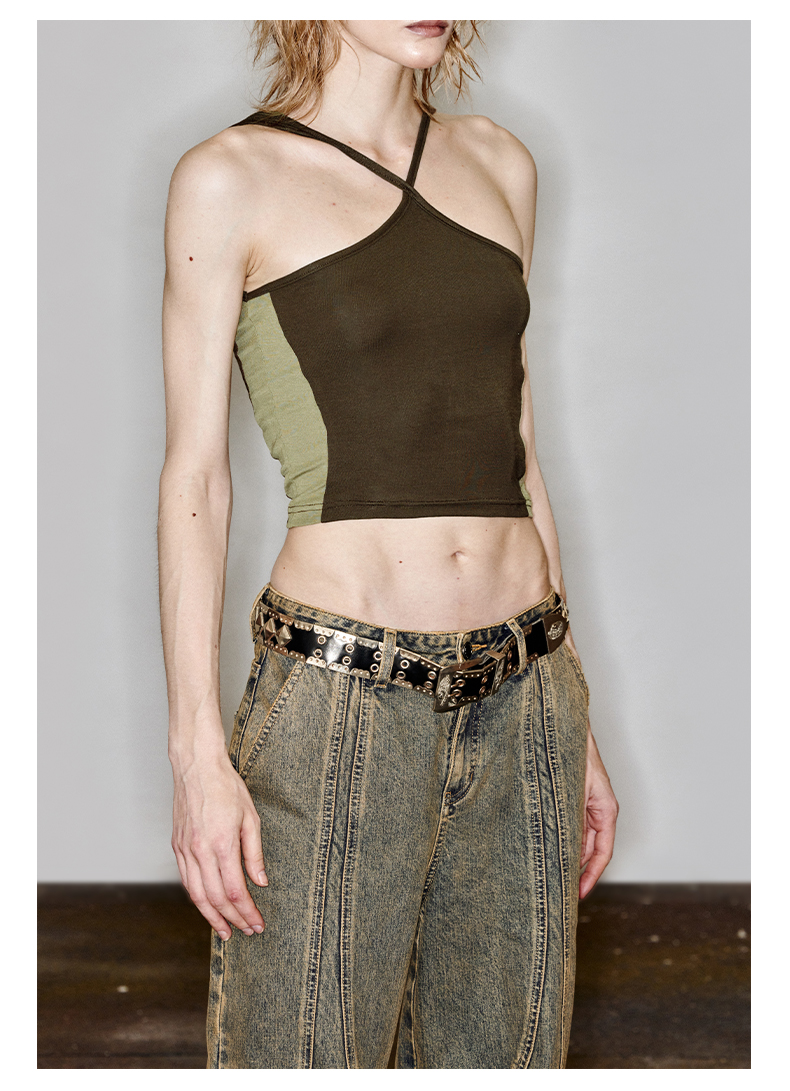 NUTH“奇异果”|拼色吊带背心正反两穿设计感短款修身背心