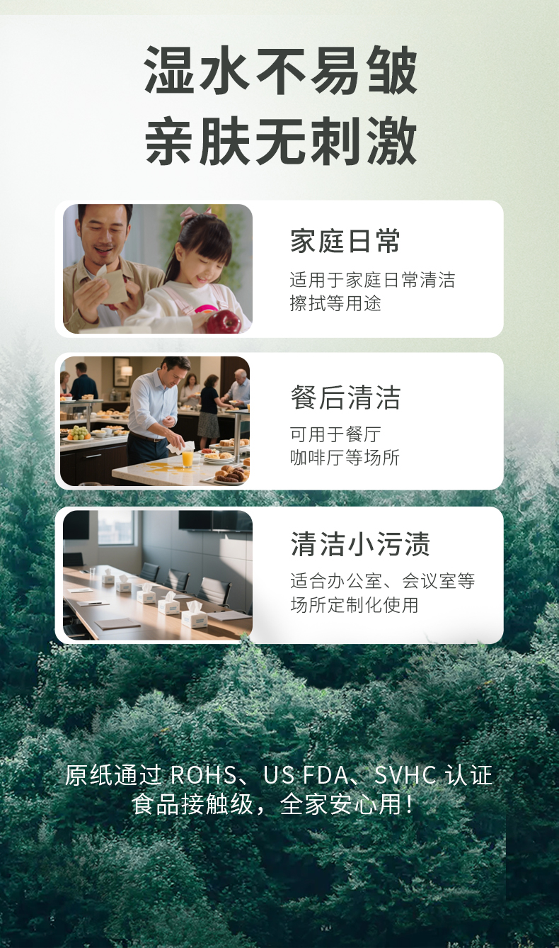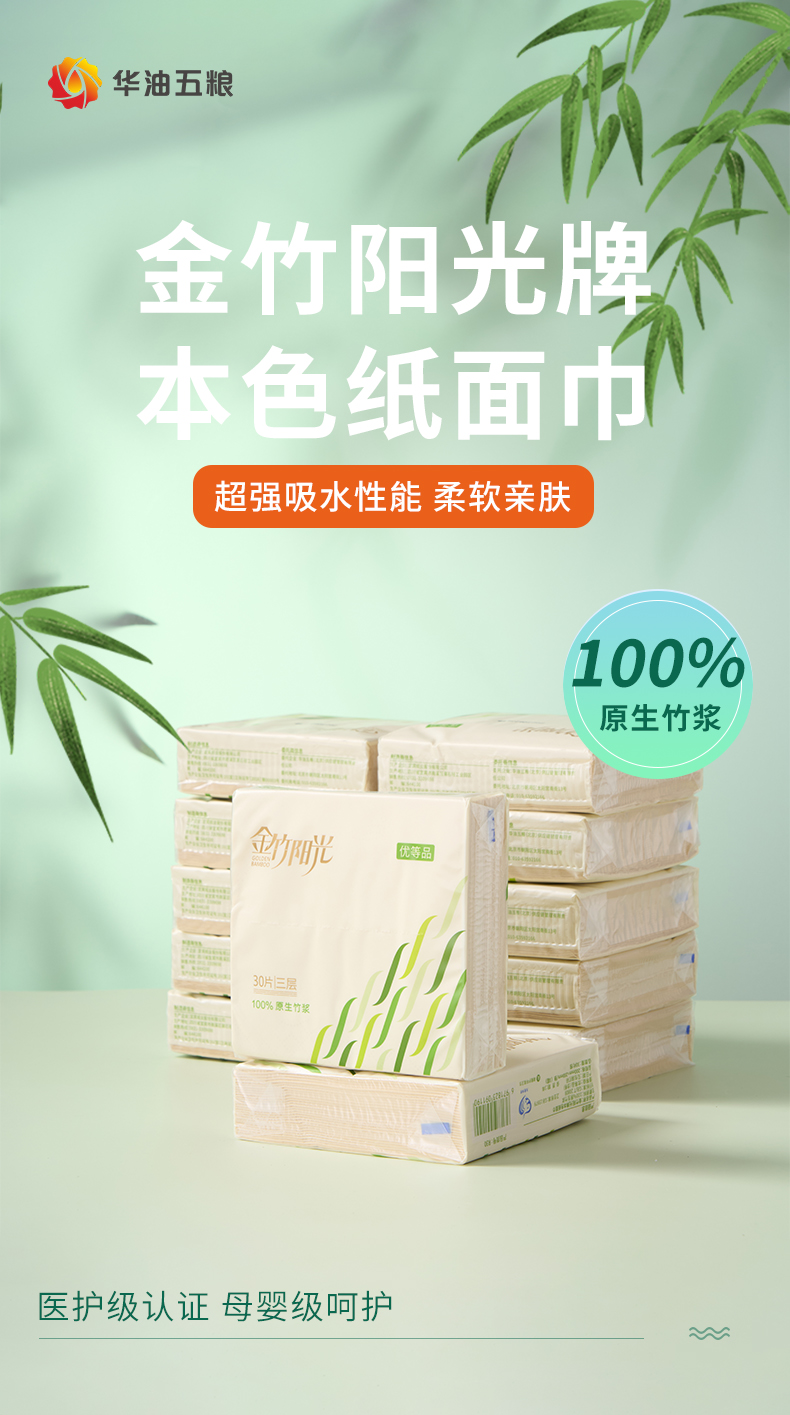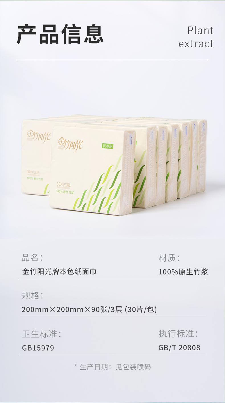 金竹阳光医护母婴级本色面巾纸200mm*200mm*3层*30片(方巾纸)48包/箱