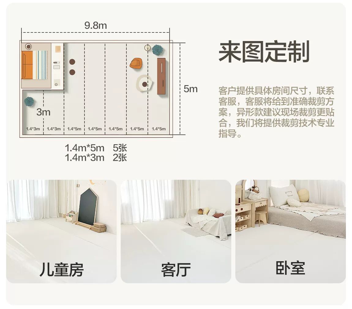 贝易全屋定制爬爬垫儿童房加厚家用无甲醛可裁剪客厅婴儿爬行地垫