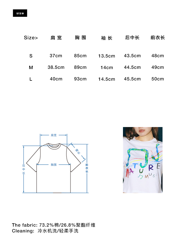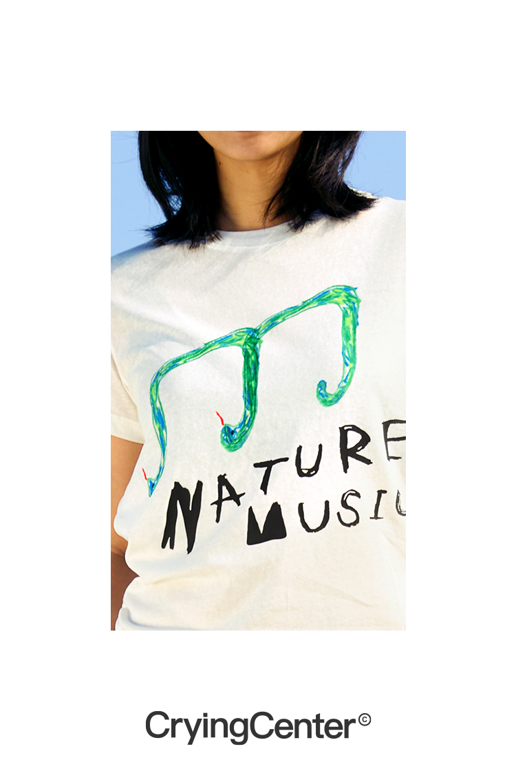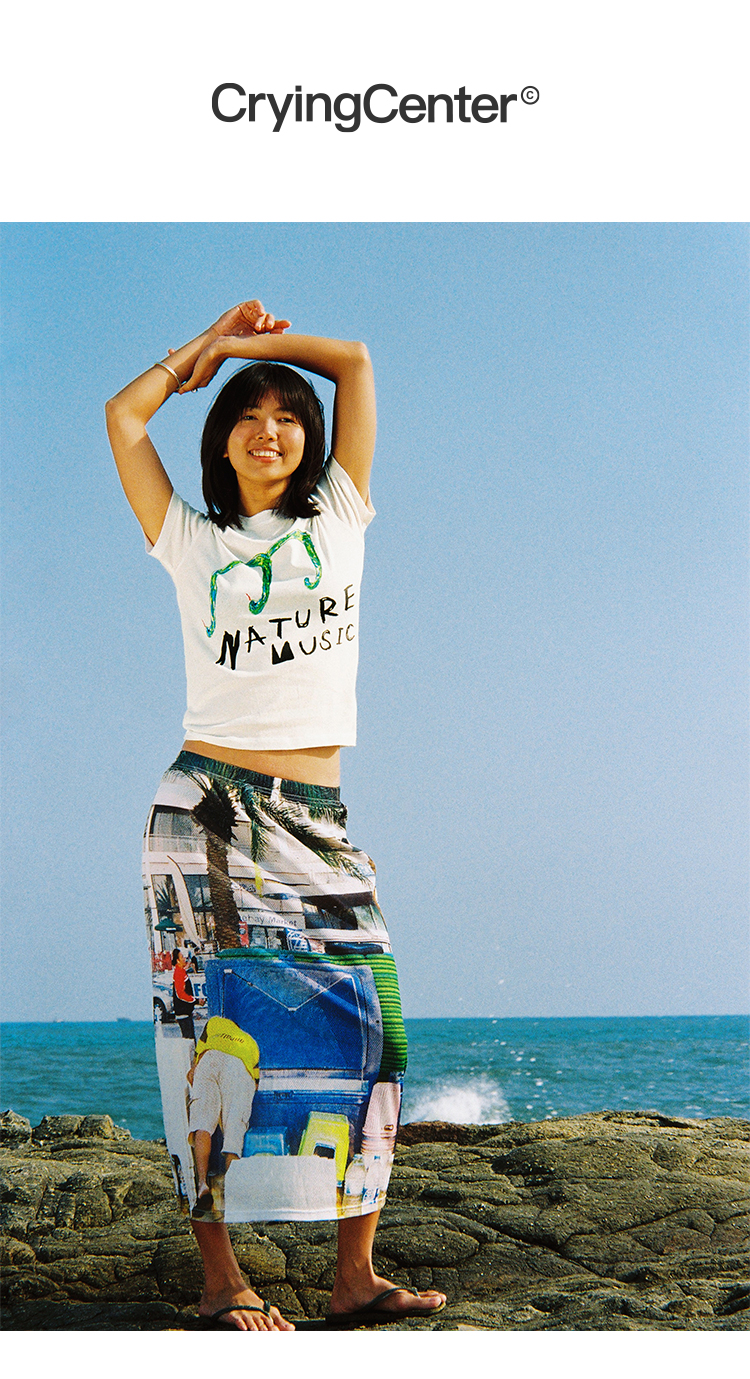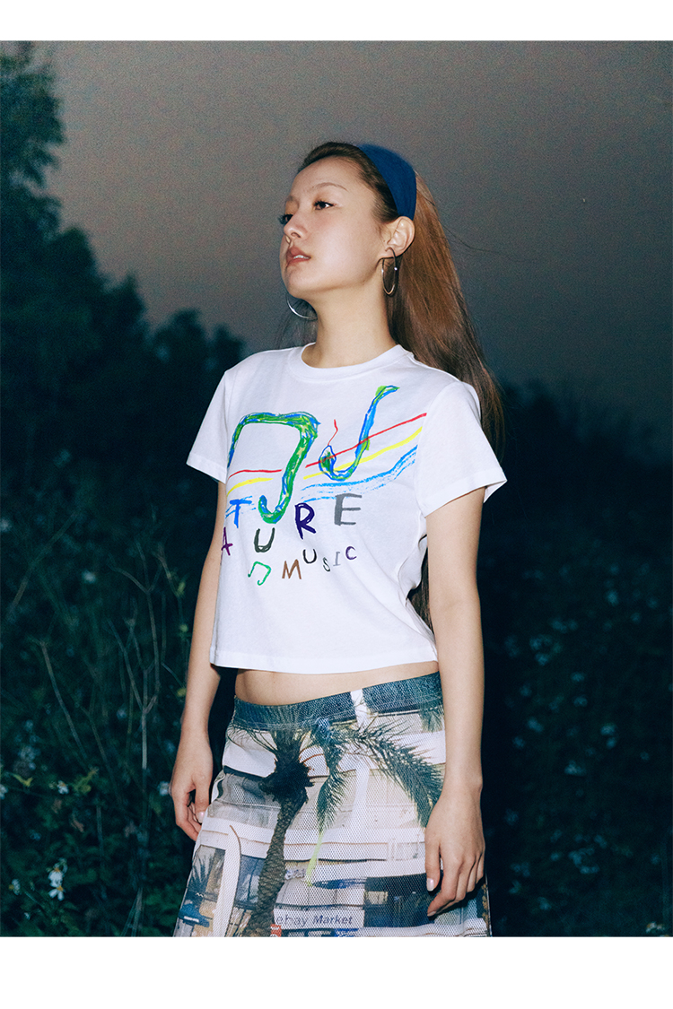 CryingCenter 灵蛇音符自然音乐手绘印花正肩短款轻薄竹节棉TEE