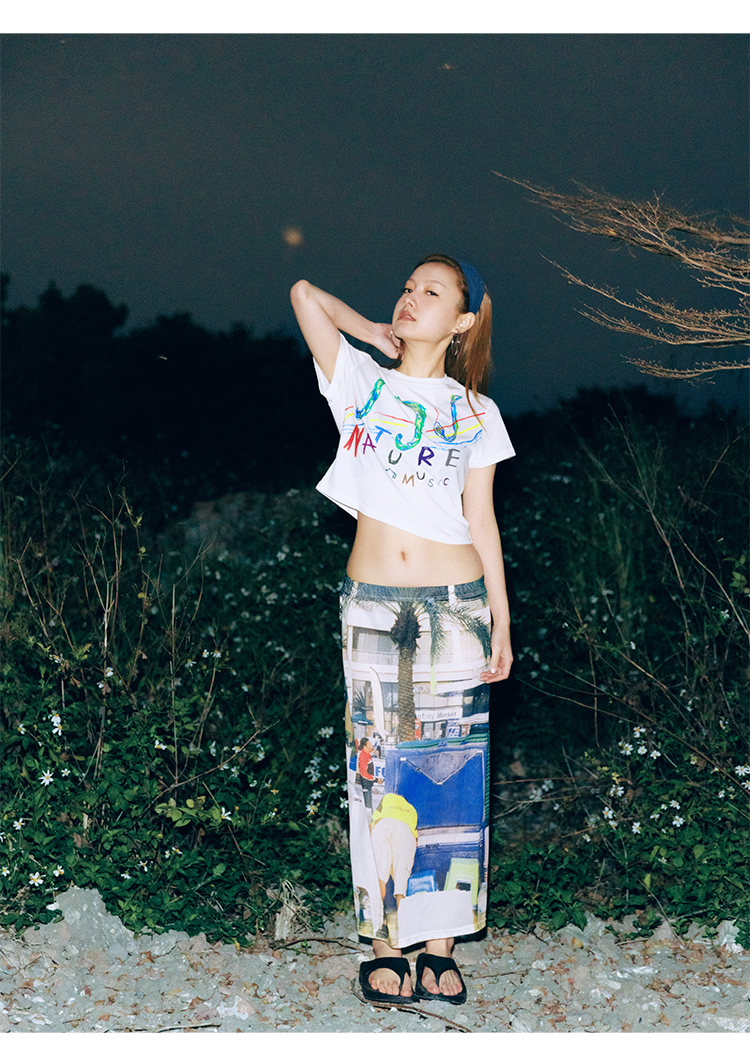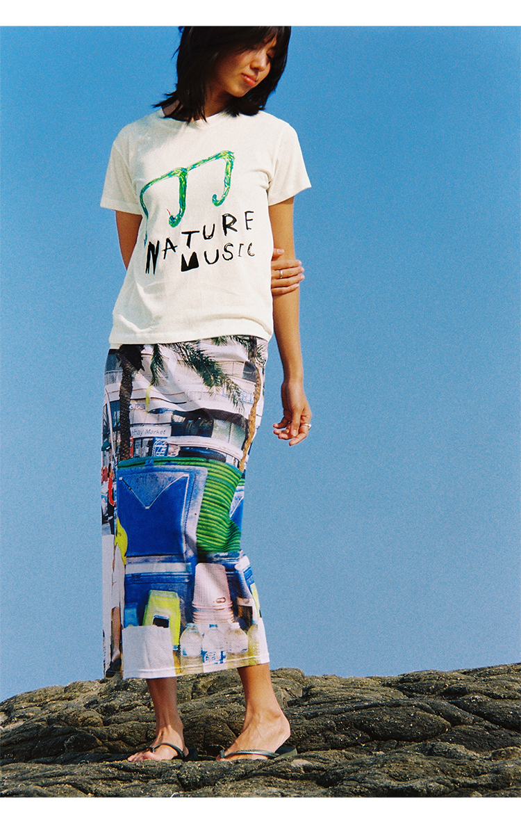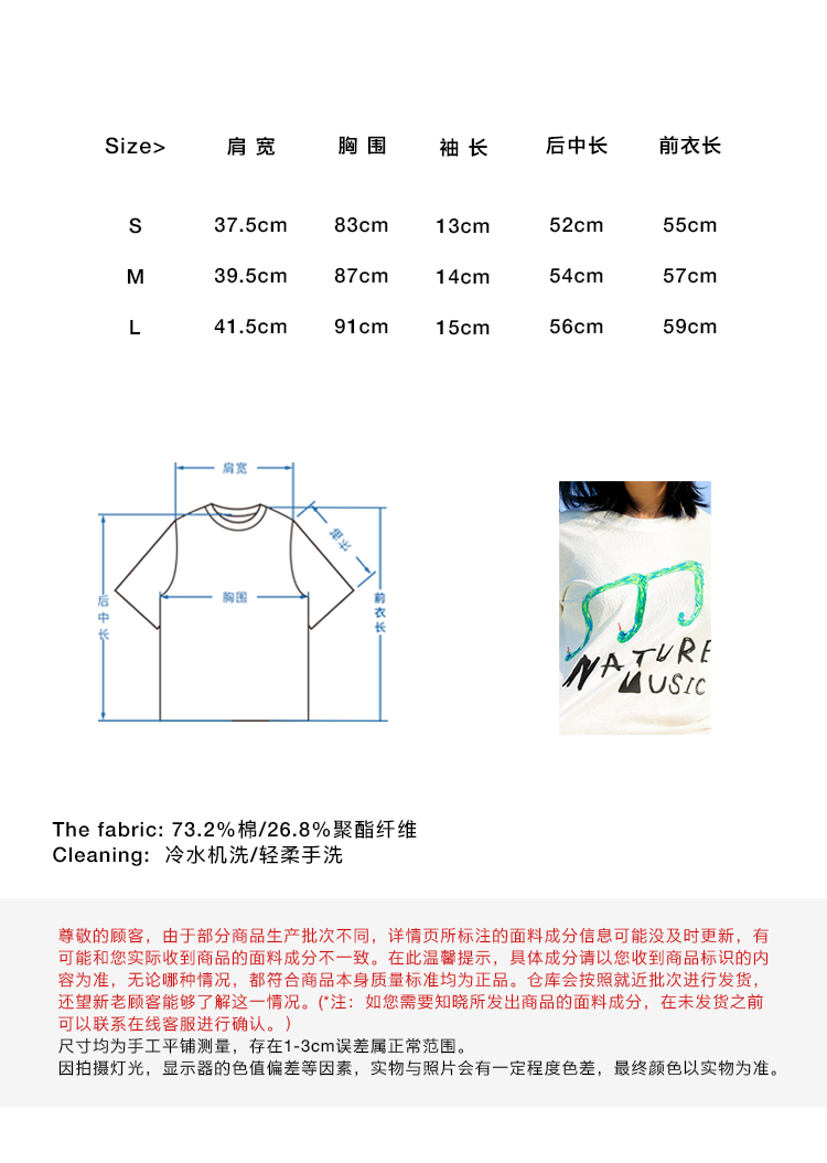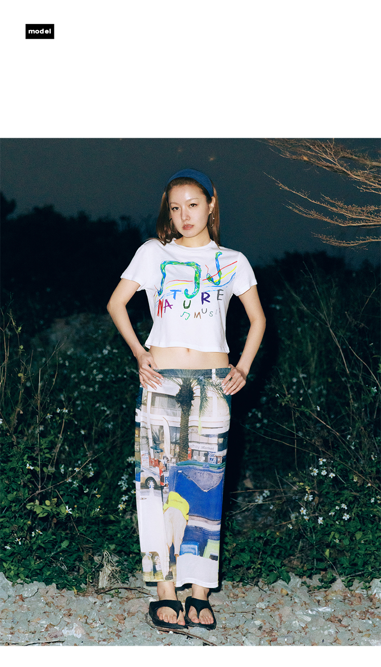 CryingCenter 灵蛇音符自然音乐手绘印花正肩短款轻薄竹节棉TEE