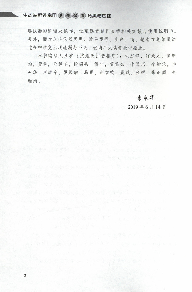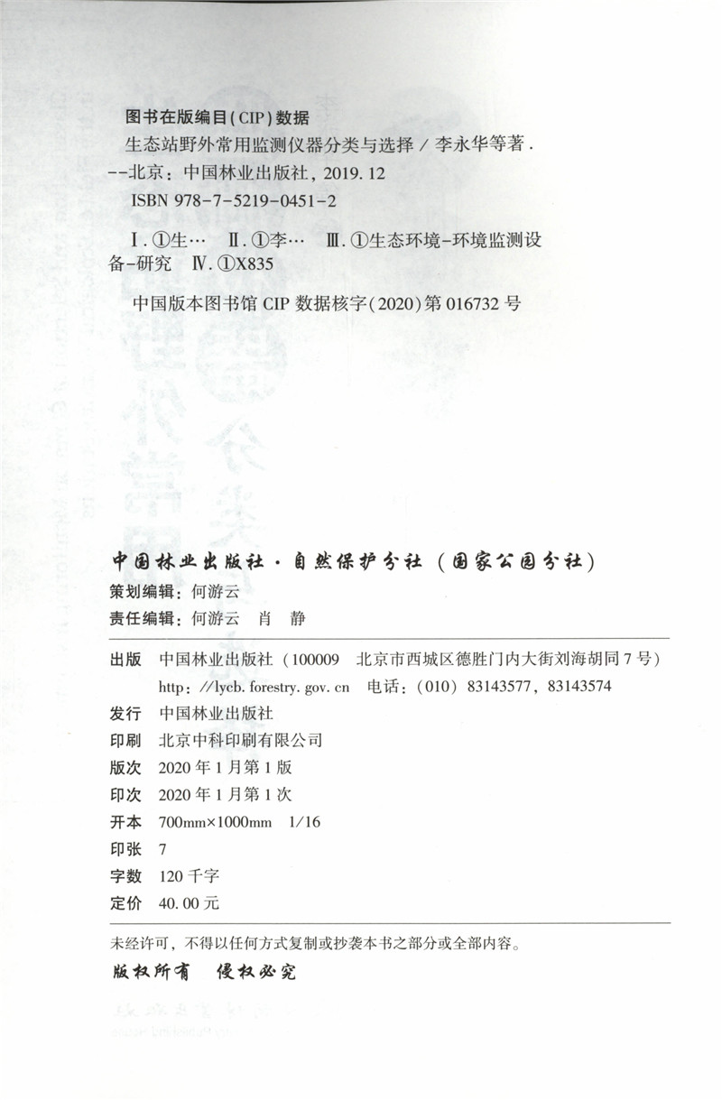 生态站野外常用监测仪器分类与选择 0451 李永华著 中国林业出版社