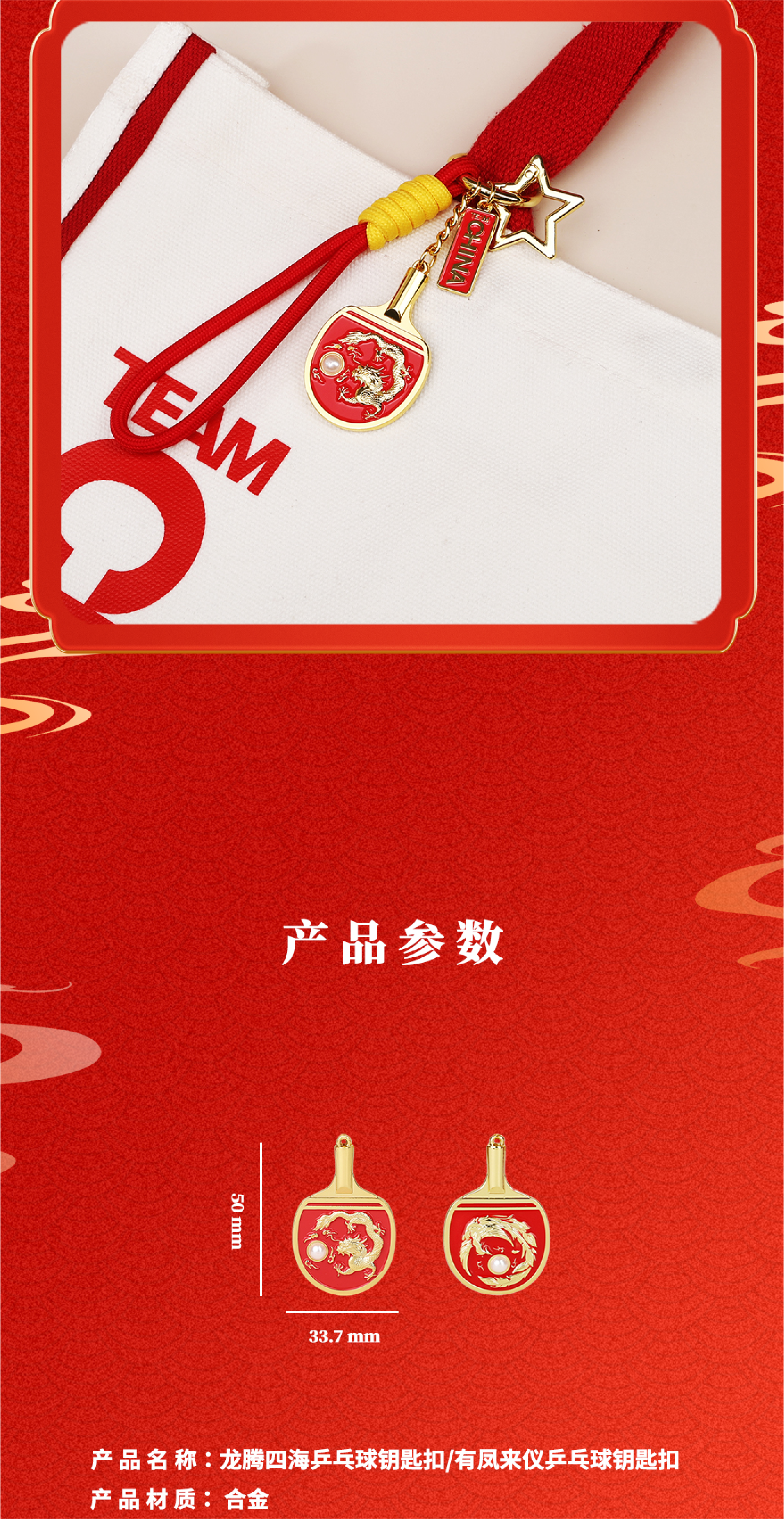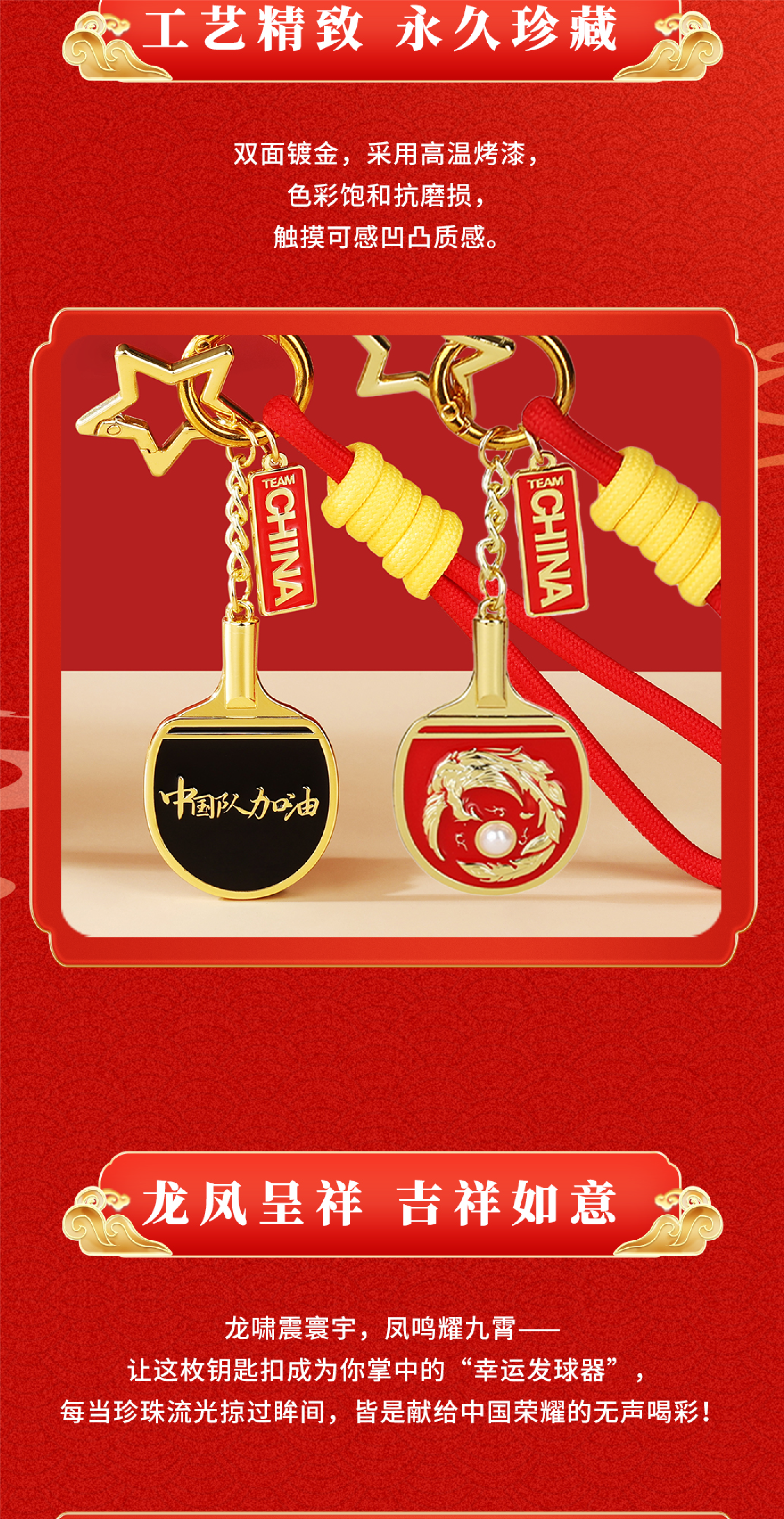 有凤来仪/龙腾四海乒乓球钥匙扣
