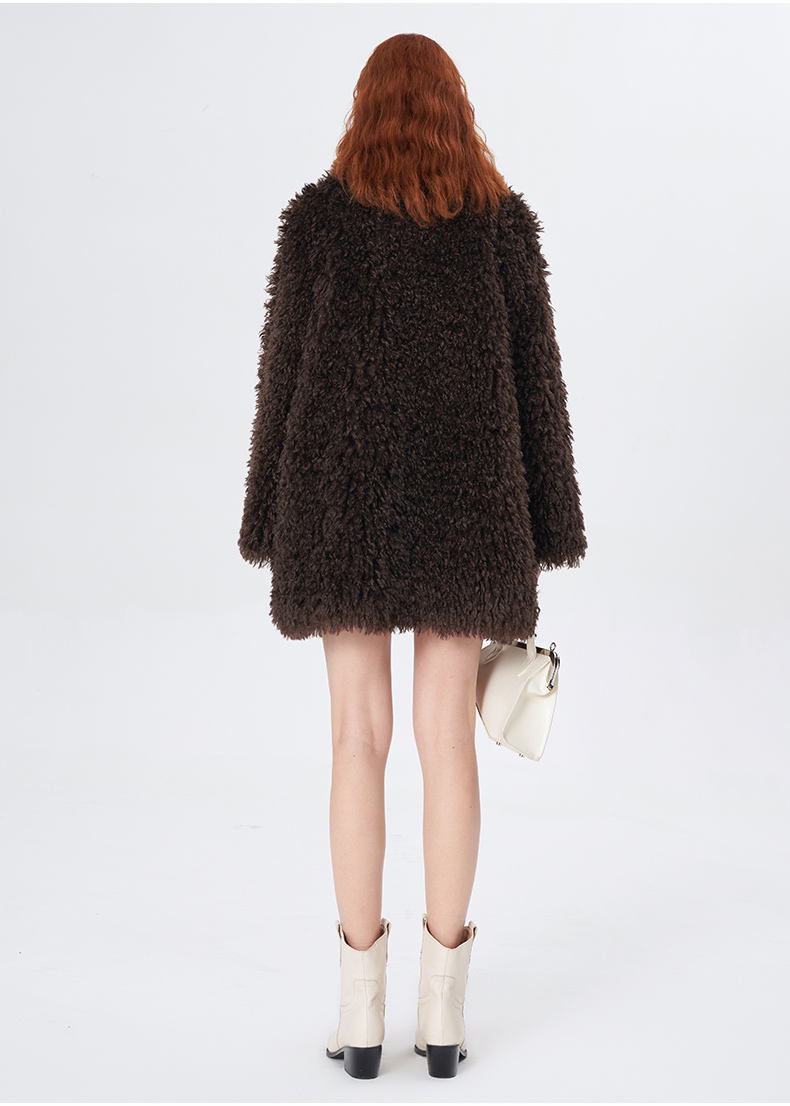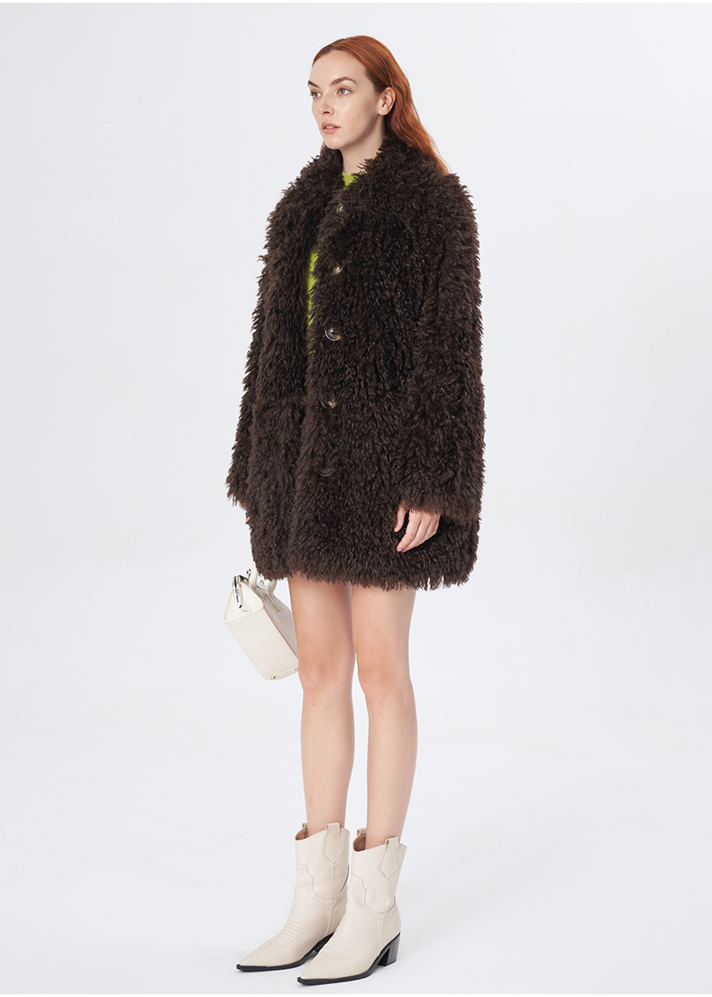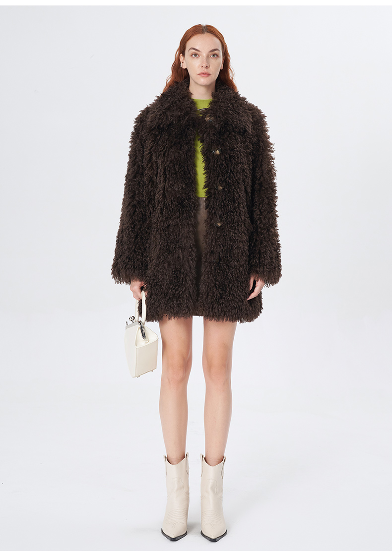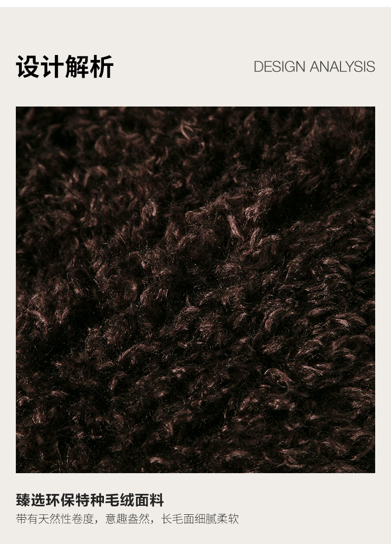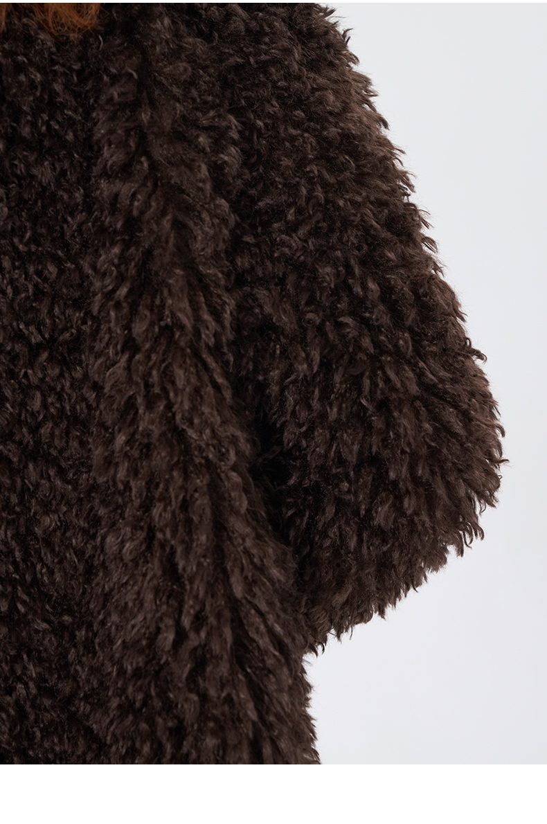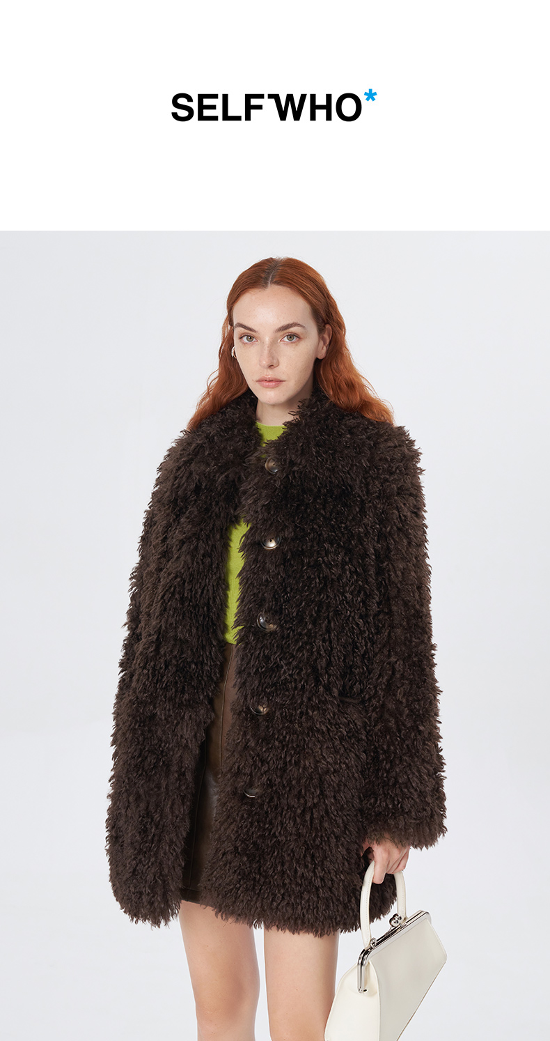 Self Who环保毛绒棕色毛呢外套女冬季2023新款宽松中长款呢子大衣
