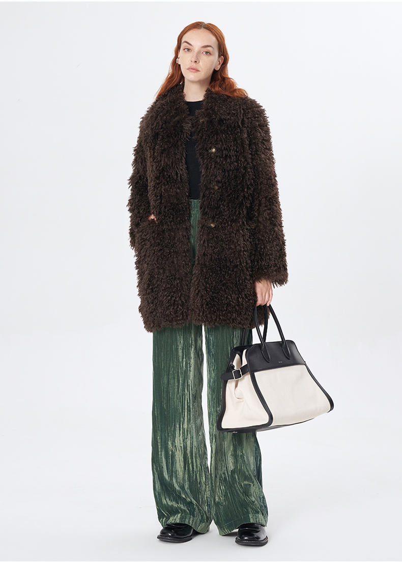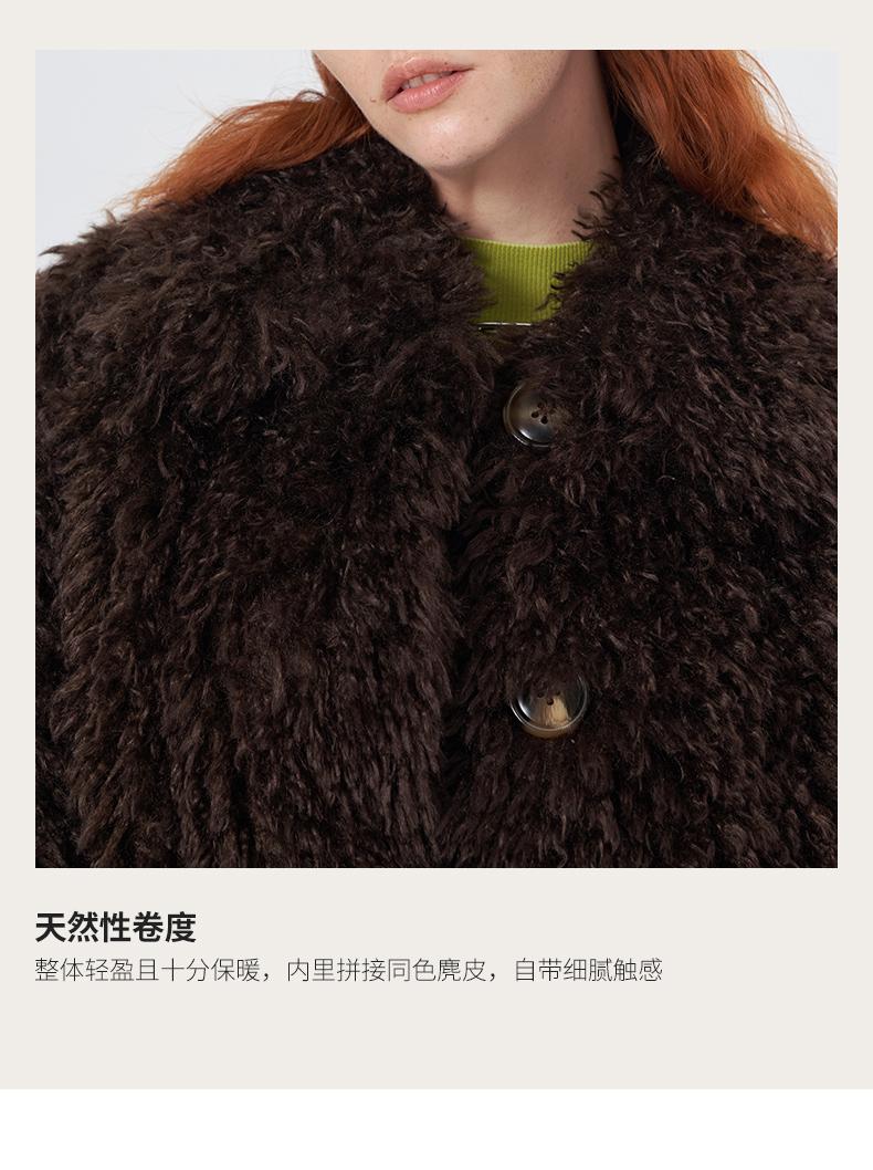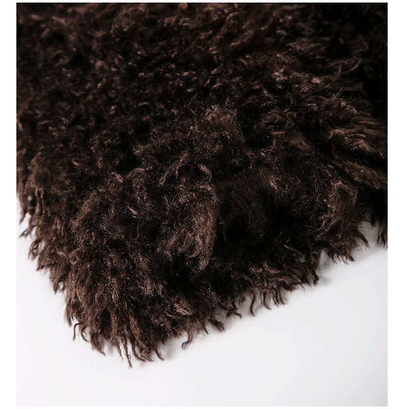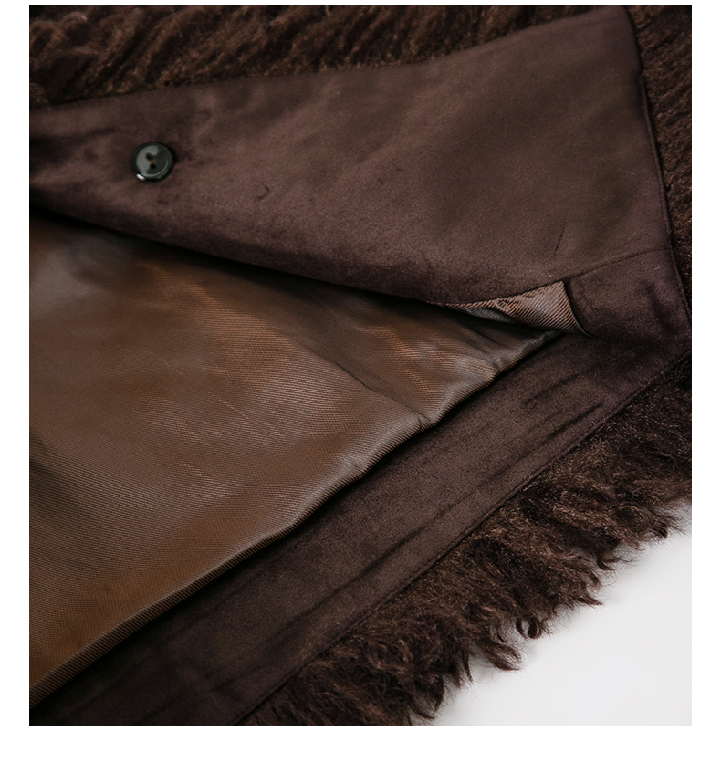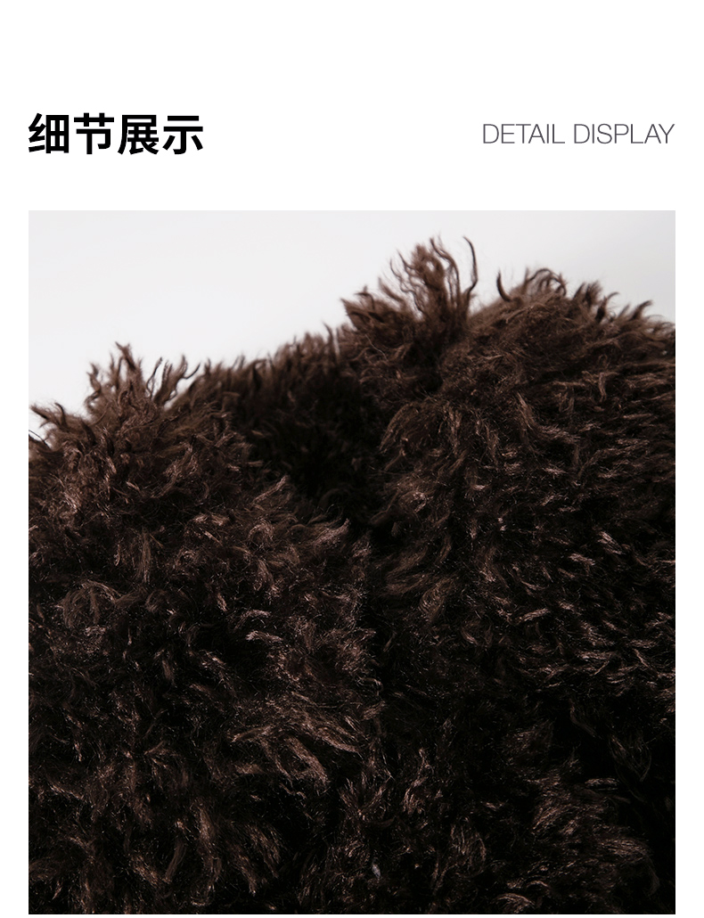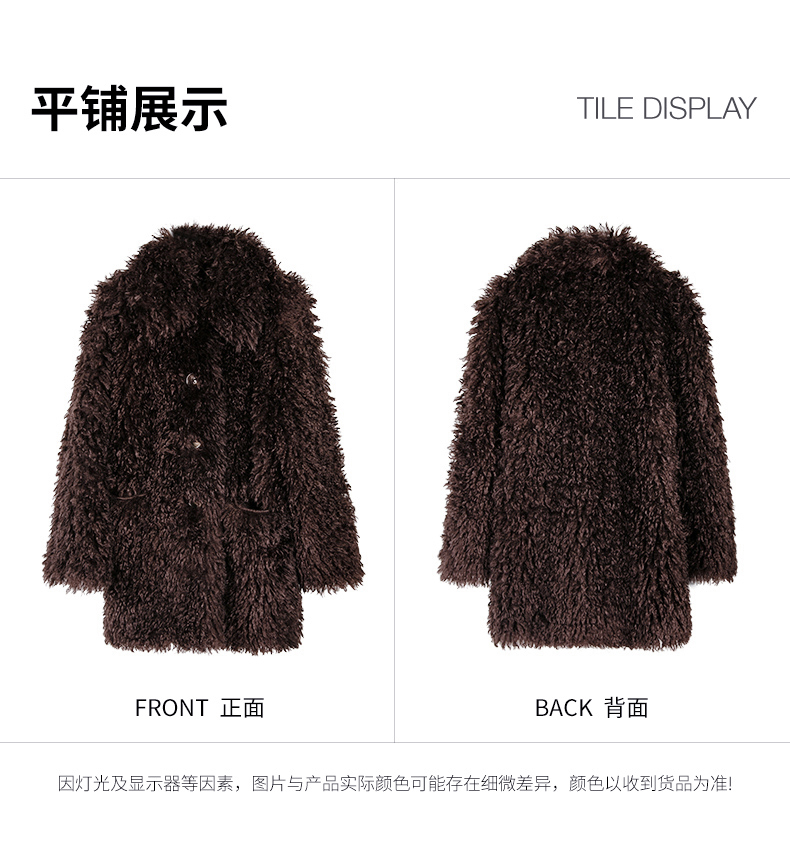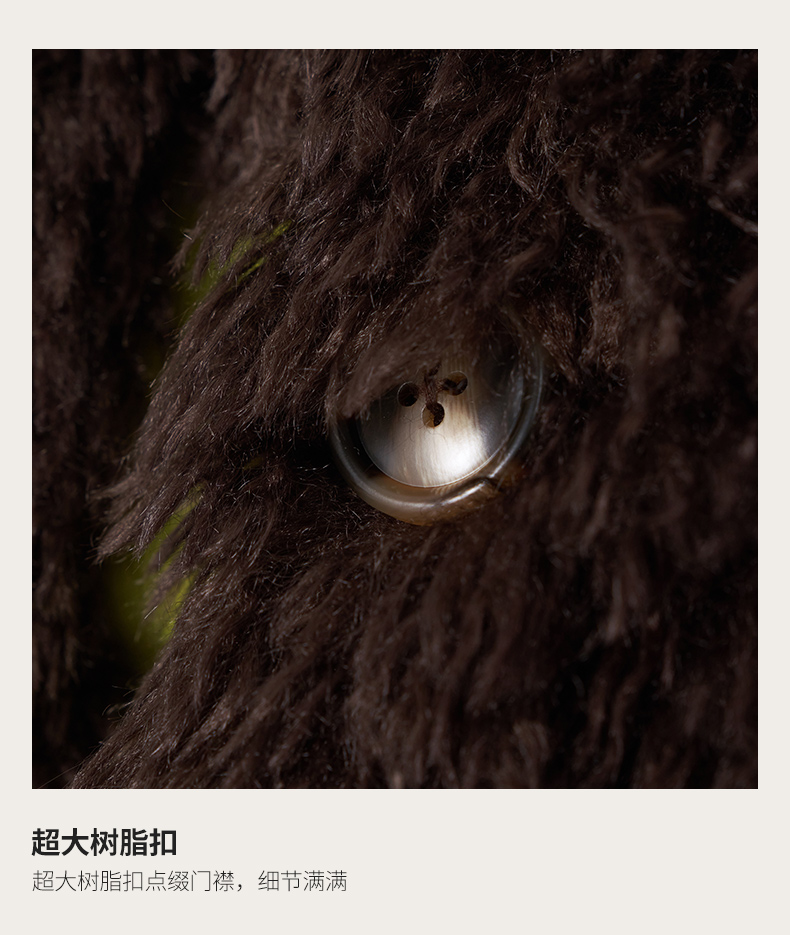 Self Who环保毛绒棕色毛呢外套女冬季2023新款宽松中长款呢子大衣