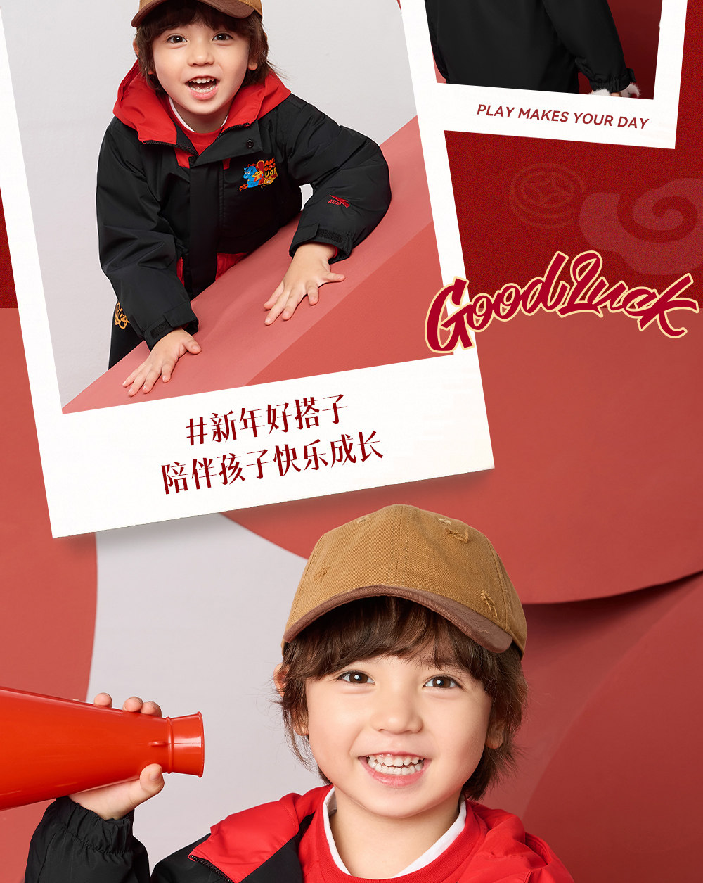 【马年新年红色】安踏儿童外套小童摇粒绒上衣2026春节保暖厚外套352619688S