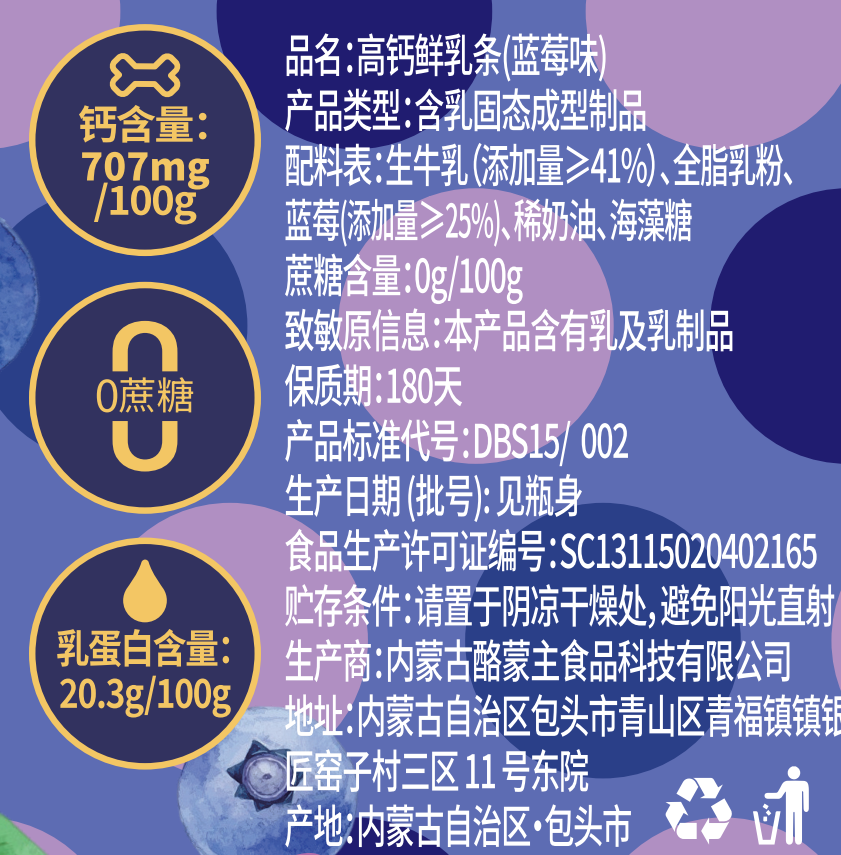 高钙鲜乳条蓝莓味,果香与奶香完美融合!