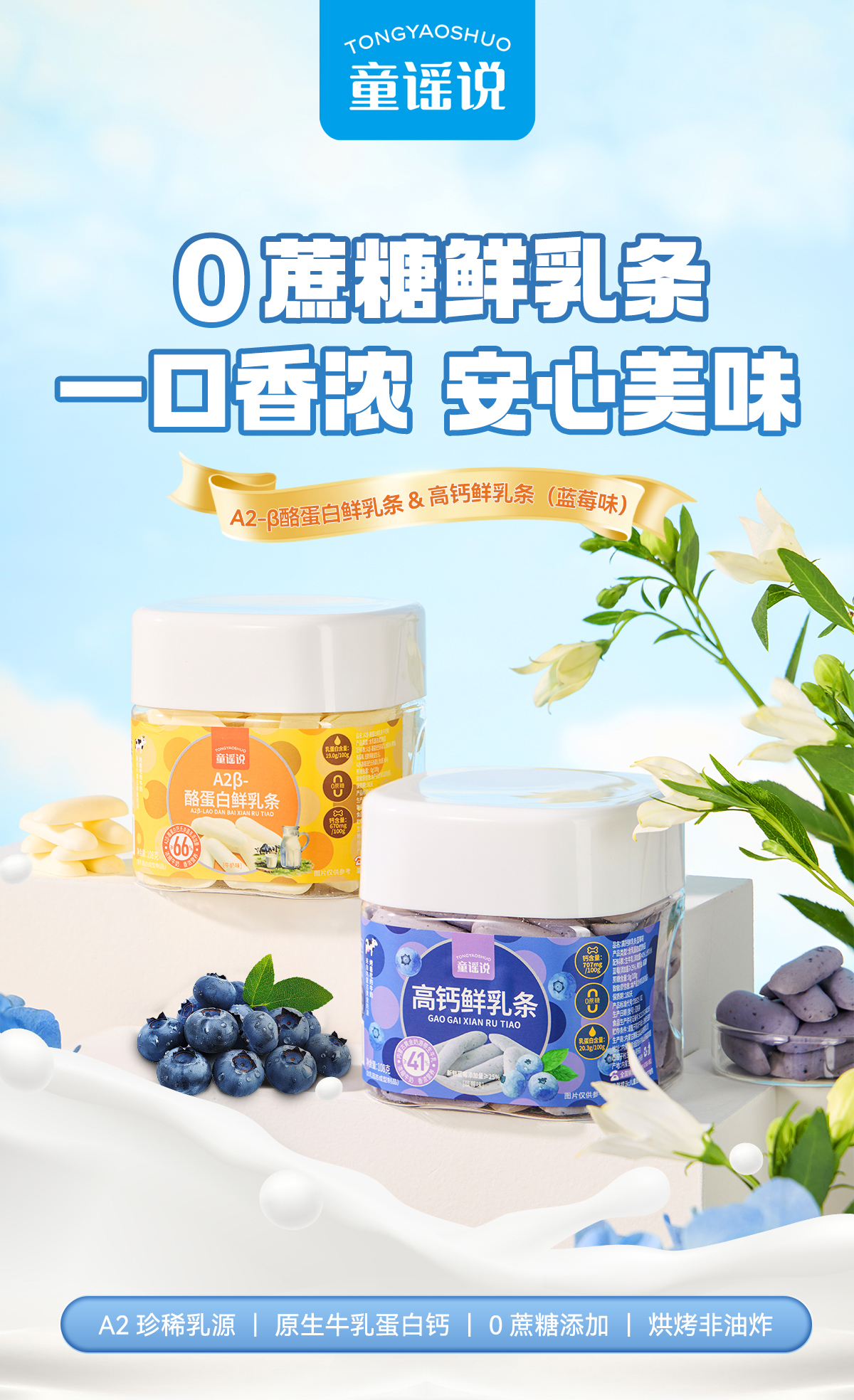 烤着吃的牛奶入口即化【童谣说·鲜奶皮】 奶香浓郁,酥脆口感,全家都爱的健康担当🥛A2β-酪蛋白鲜乳条+高钙蓝莓鲜乳条🫐