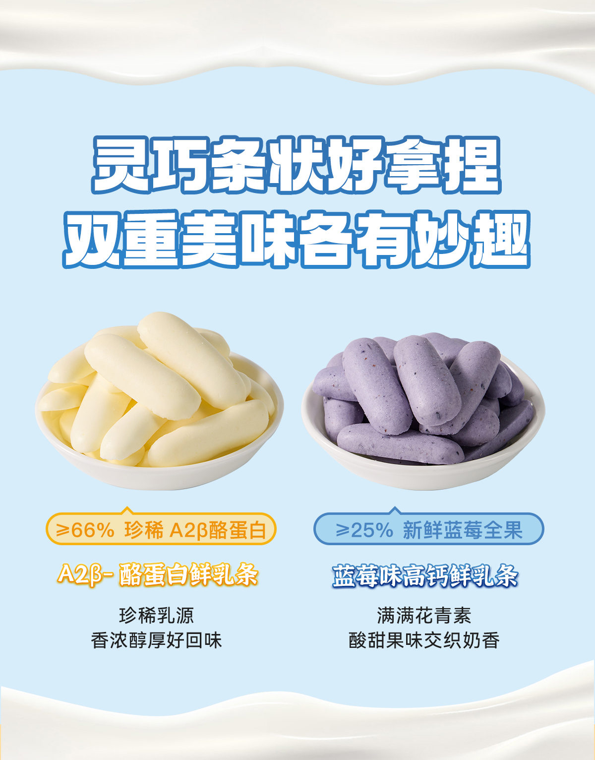 🌟2种口味:A2β-酪蛋白鲜乳条+高钙蓝莓鲜乳条
