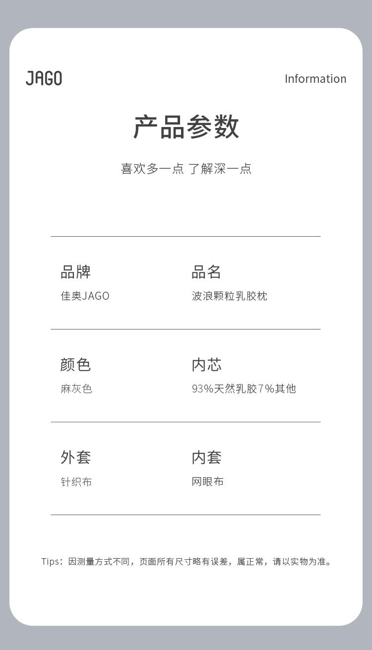 优选丨佳奥JAGO 波浪颗粒乳胶枕 泰国进口乳胶 气味清新 随意扭捏不变形枕头 男女老幼适宜居家枕