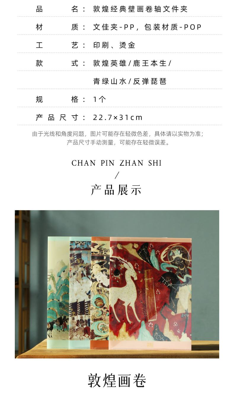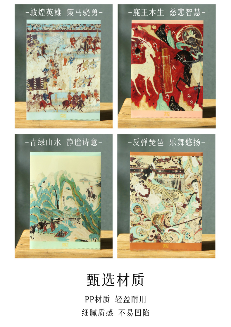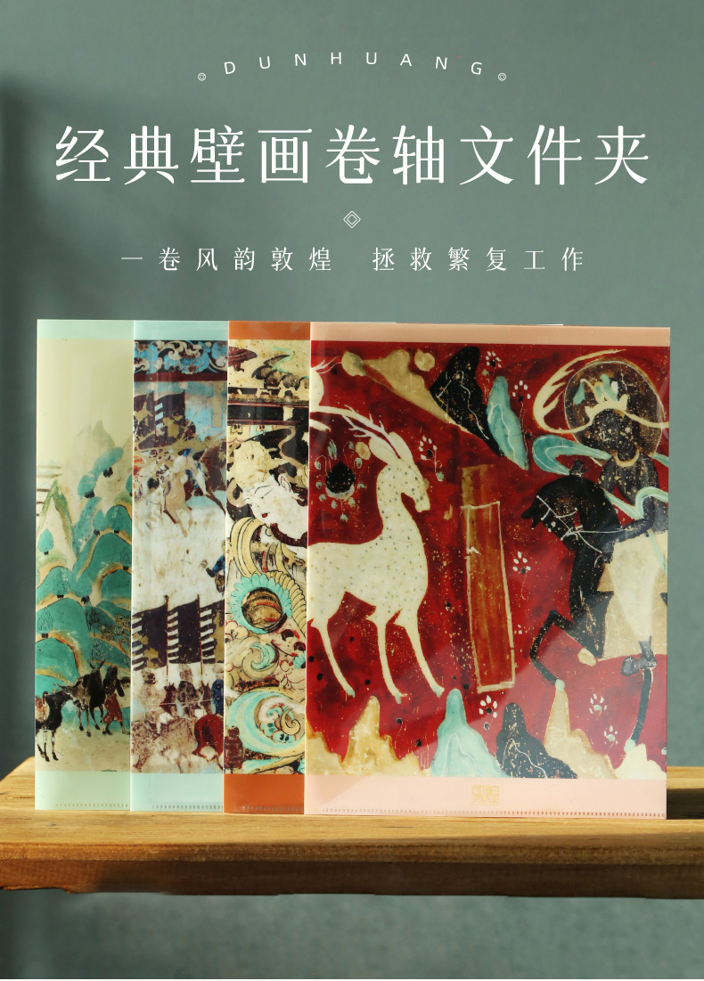 敦煌【经典壁画卷轴文件夹】档案夹小学生初中生专用试卷收纳多功能桌面合同透明插页博物馆文创高级感