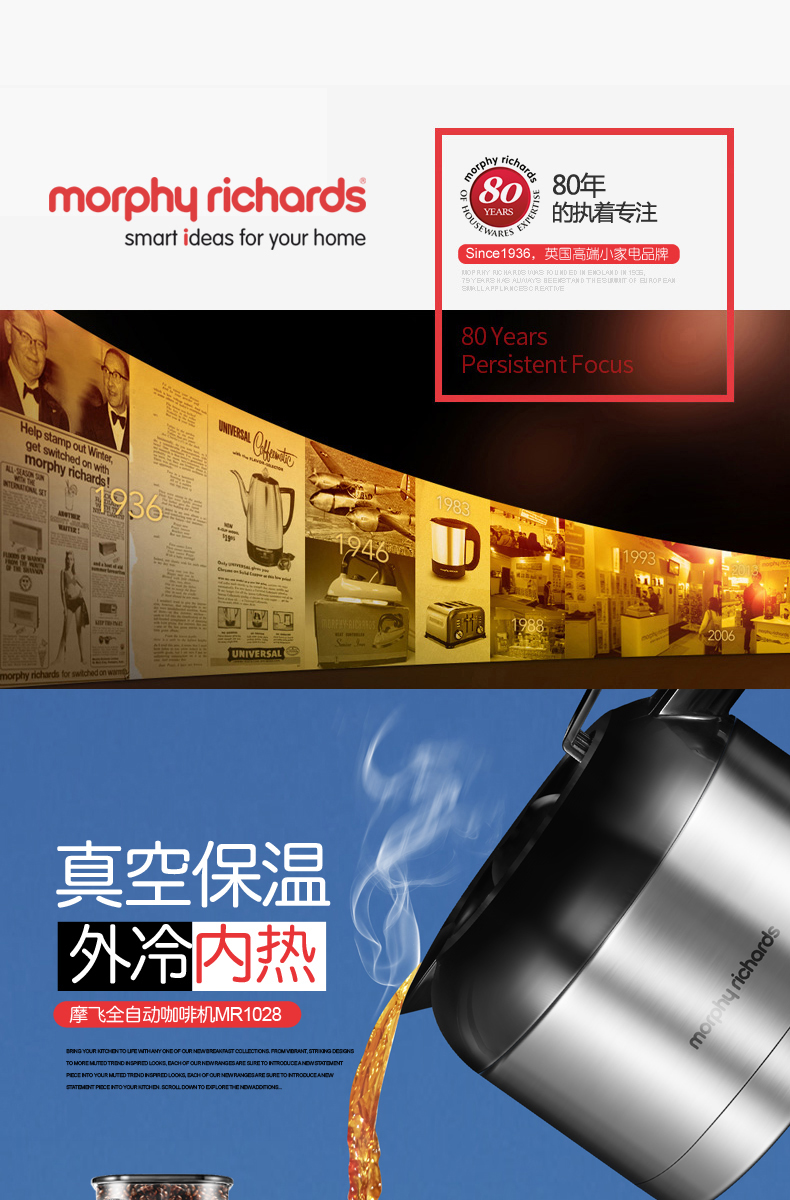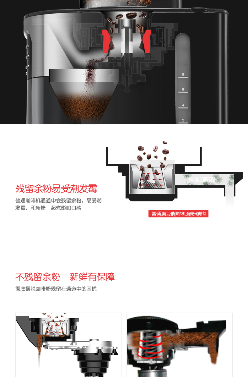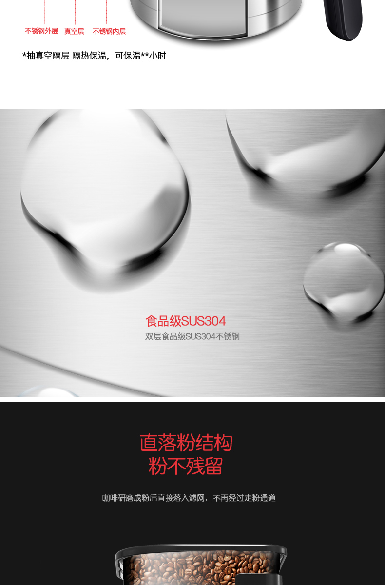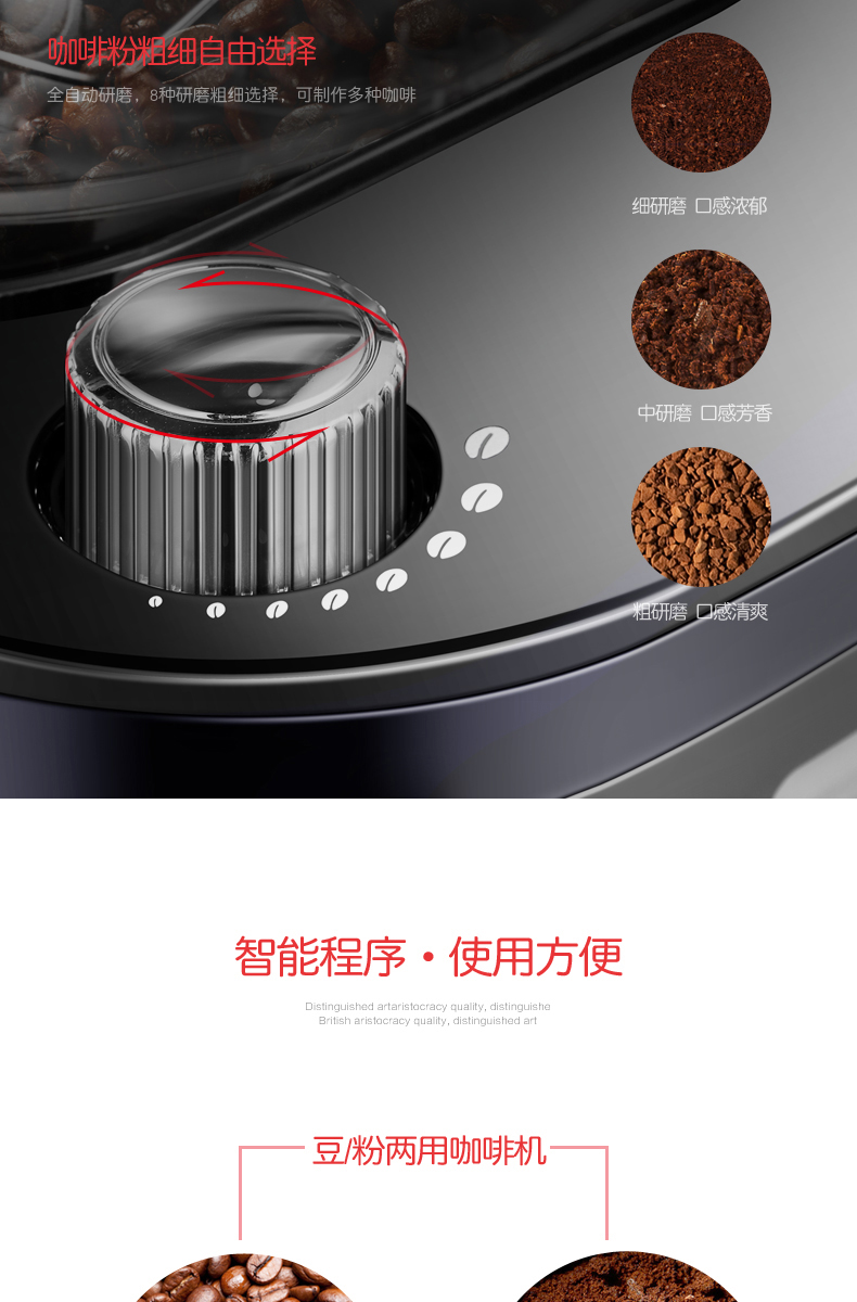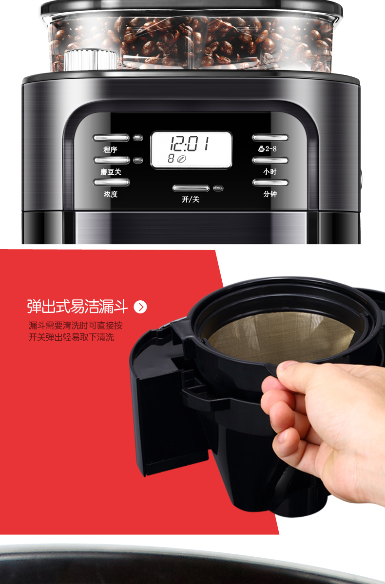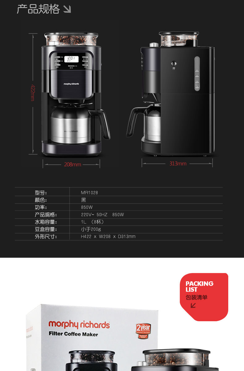 摩飞(Morphyrichards)美式经典咖啡机全自动预约滴漏磨豆豆粉两用 MR1028