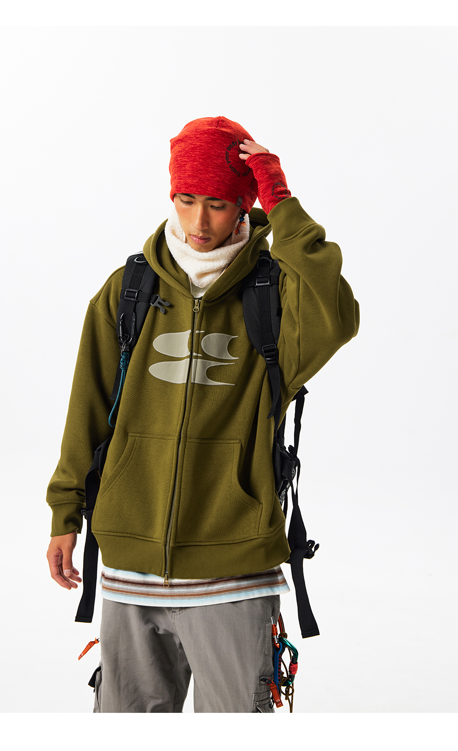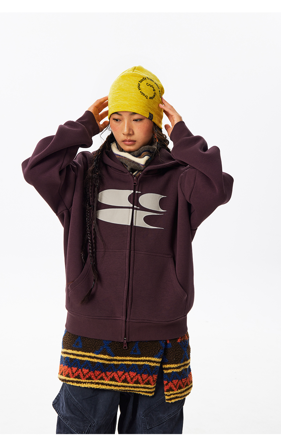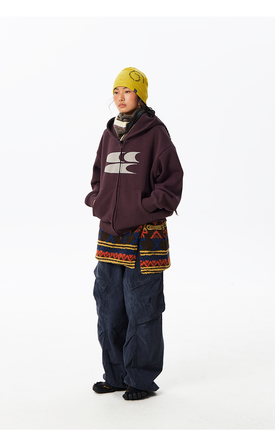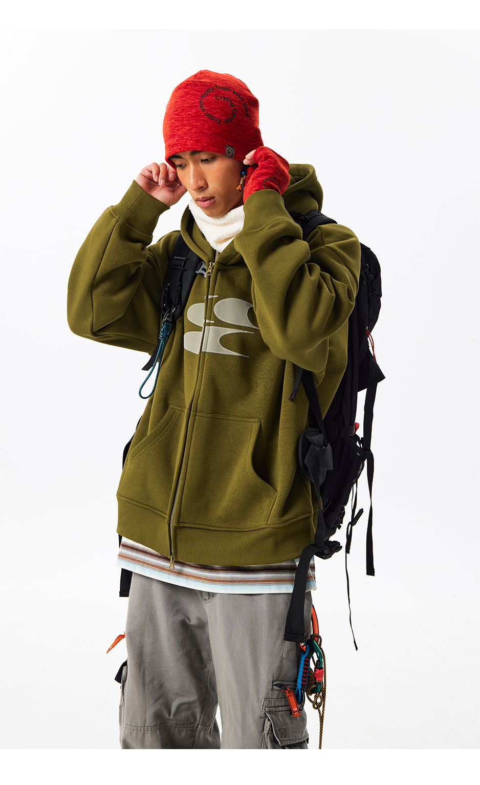 CryingCenter经典logo印花奥绒加绒连帽开衫卫衣外套男女款