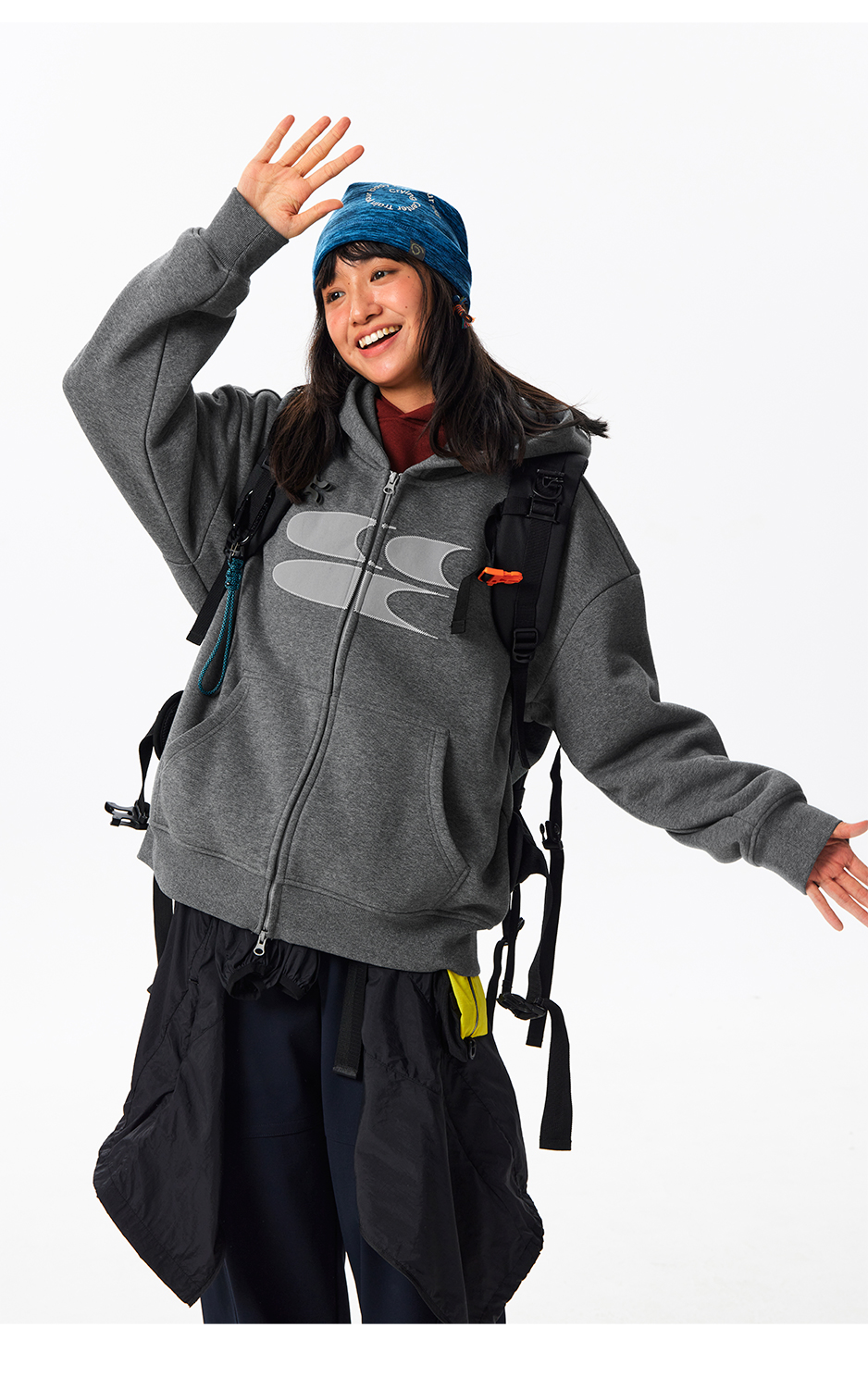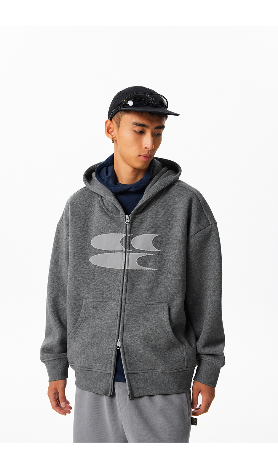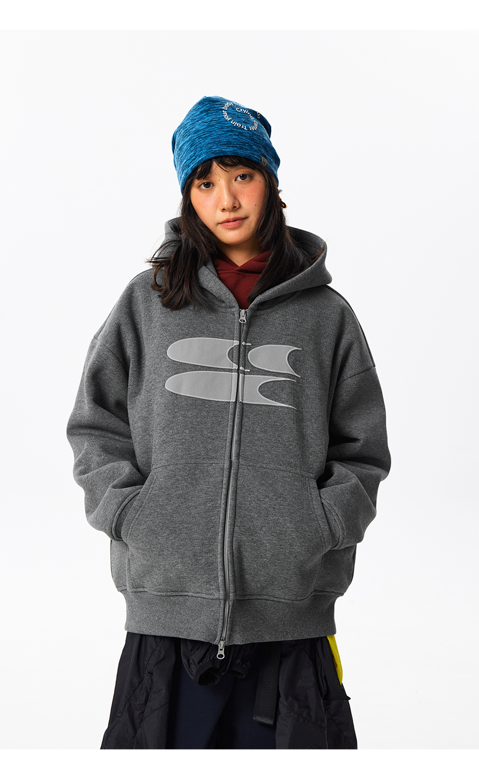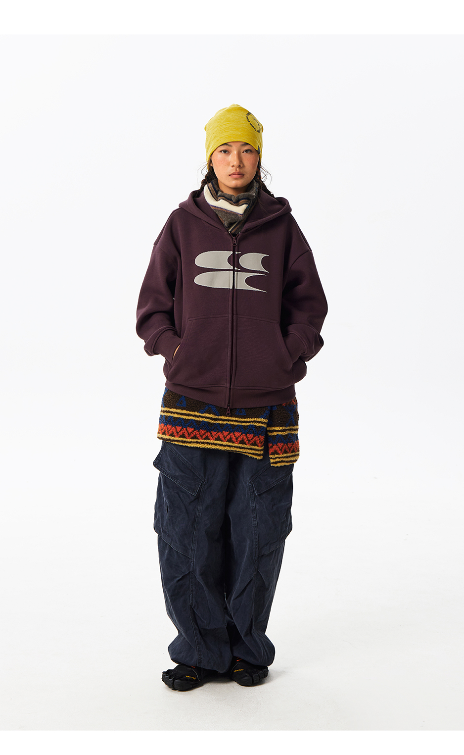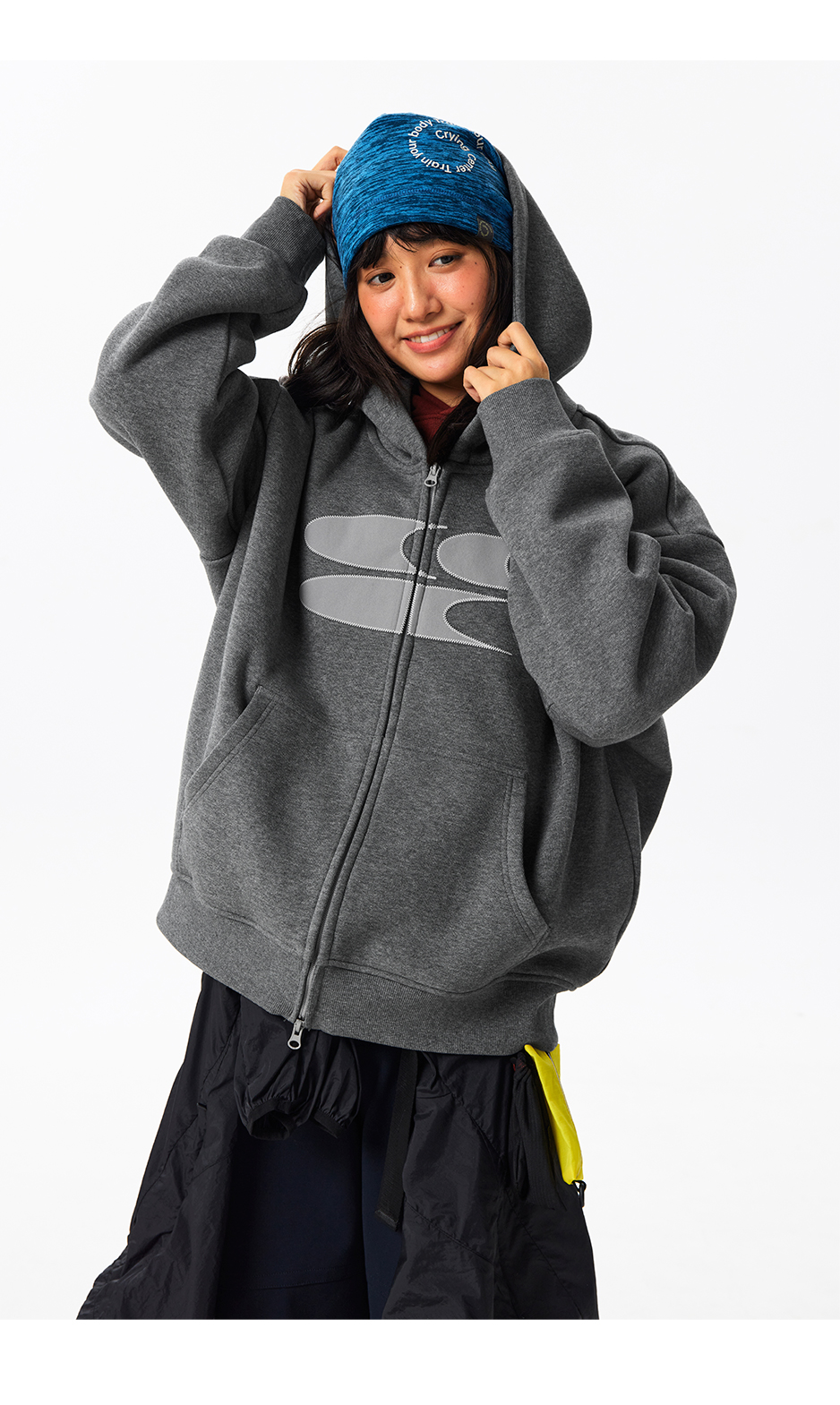 CryingCenter经典logo印花奥绒加绒连帽开衫卫衣外套男女款