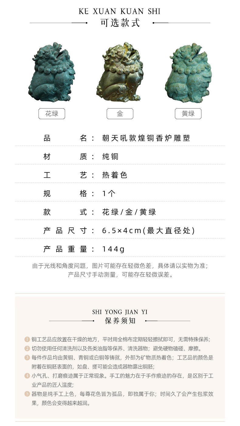 敦煌研究院【朝天吼敦煌铜香炉雕塑】香炉家用室内熏香家居创意摆件