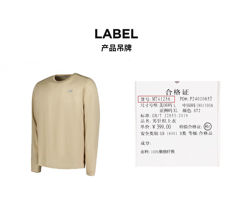 New Balance Athletics Long Sleeve 男T恤户外运动透气运动长袖上衣