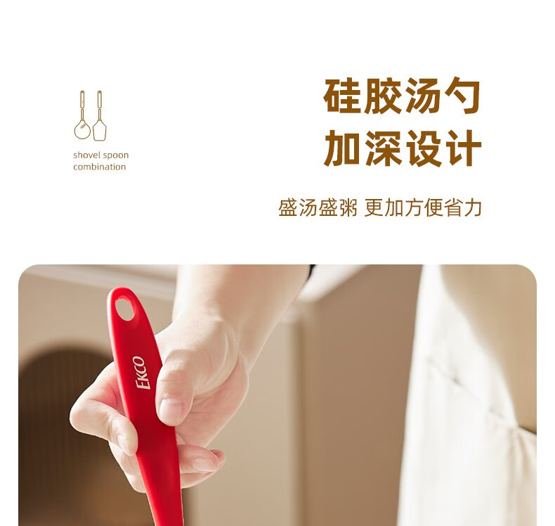 申魔 家用硅胶铲子勺子 不粘锅护锅铲炒锅煎锅平底锅耐高温炒菜铲勺 勺铲2件套 SC22K08