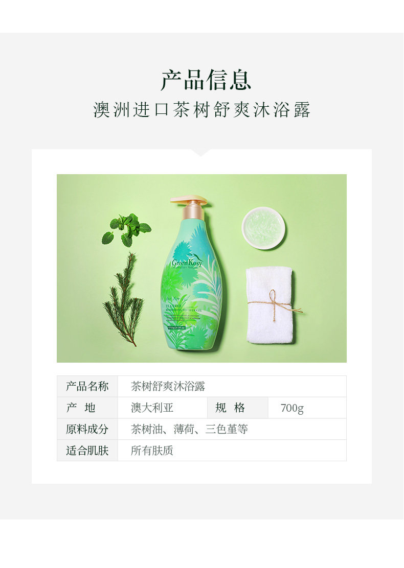 700g绿色溪谷茶树舒爽沐浴露 补水 锁水 保湿 清爽