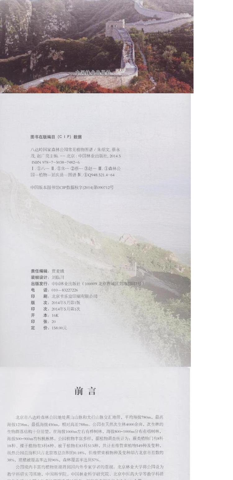 八达岭国家森林公园常见植物图谱 科技 7482 中国林业出版社