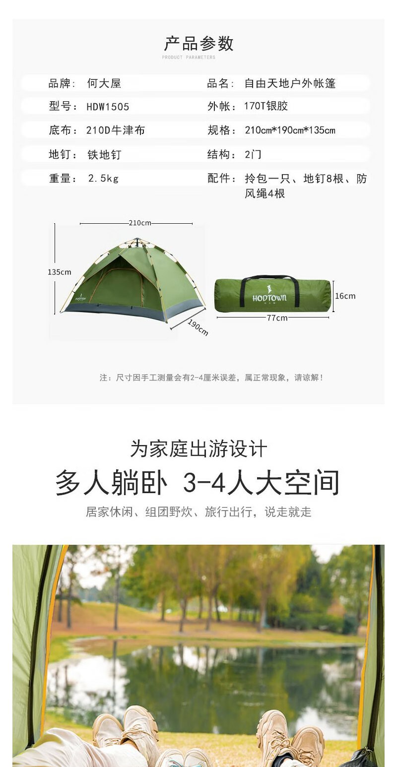 何大屋 帐篷 全自动自由天地户外帐篷 HDW1505
