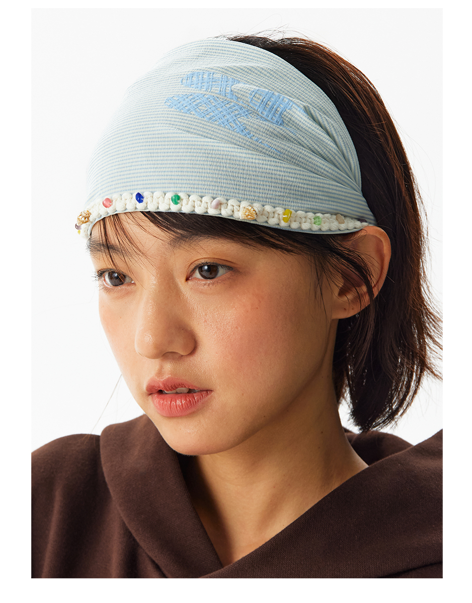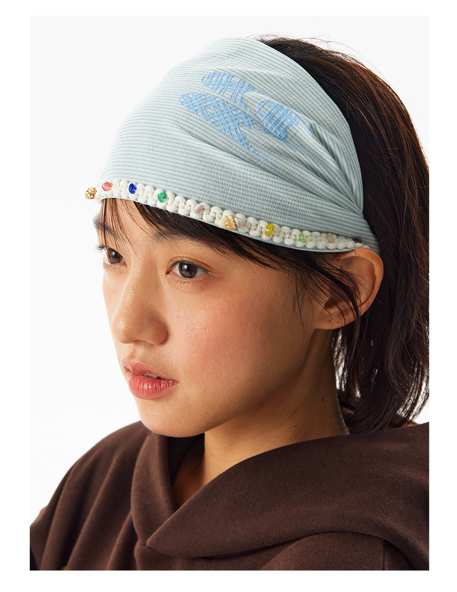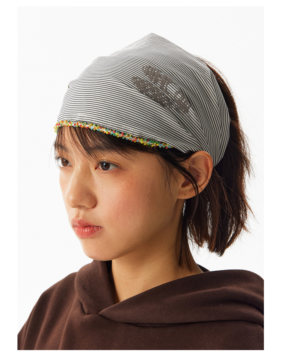 CryingCenter 贝壳彩珠花边条纹头巾发带百搭 哭喊中心