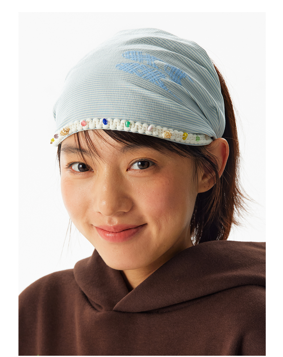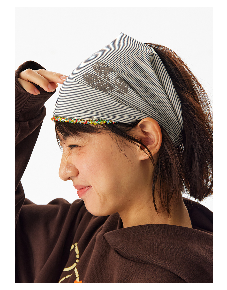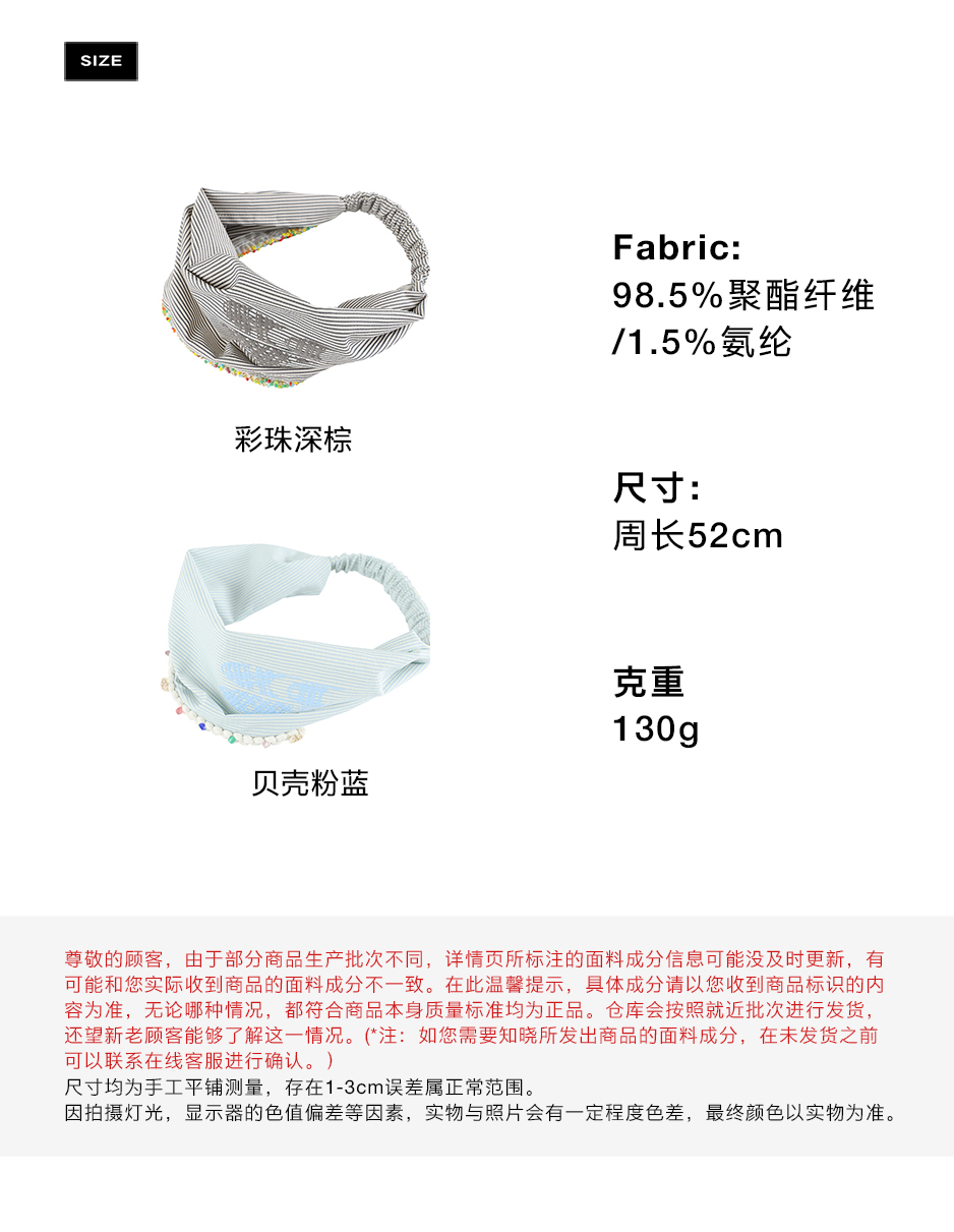 CryingCenter 贝壳彩珠花边条纹头巾发带百搭 哭喊中心