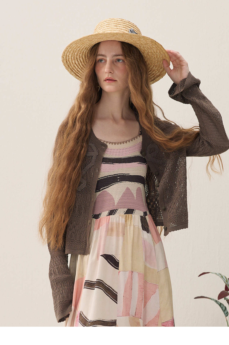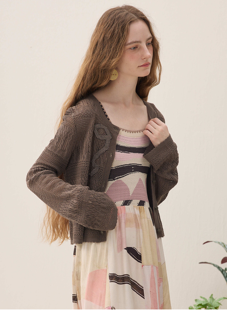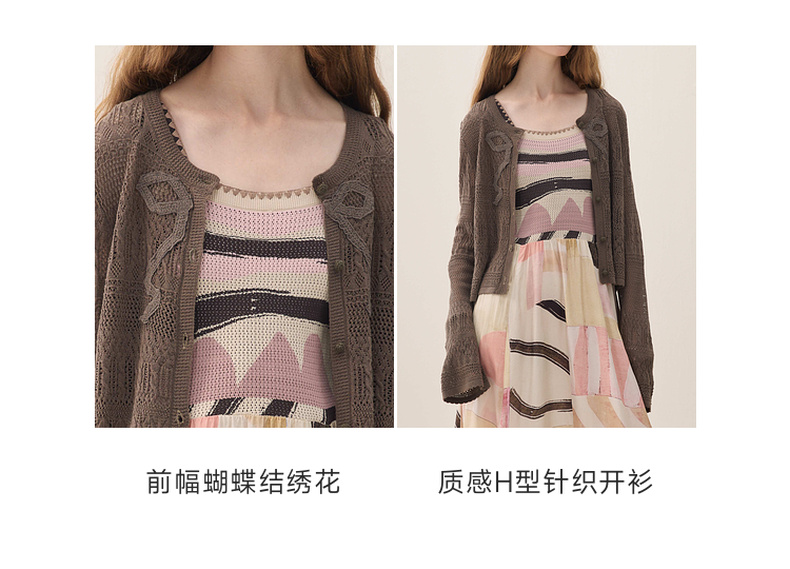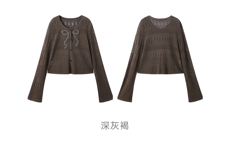 谜底针织开衫长袖2026年春季新品肌理提花蝴蝶结毛衣女261MZ0337