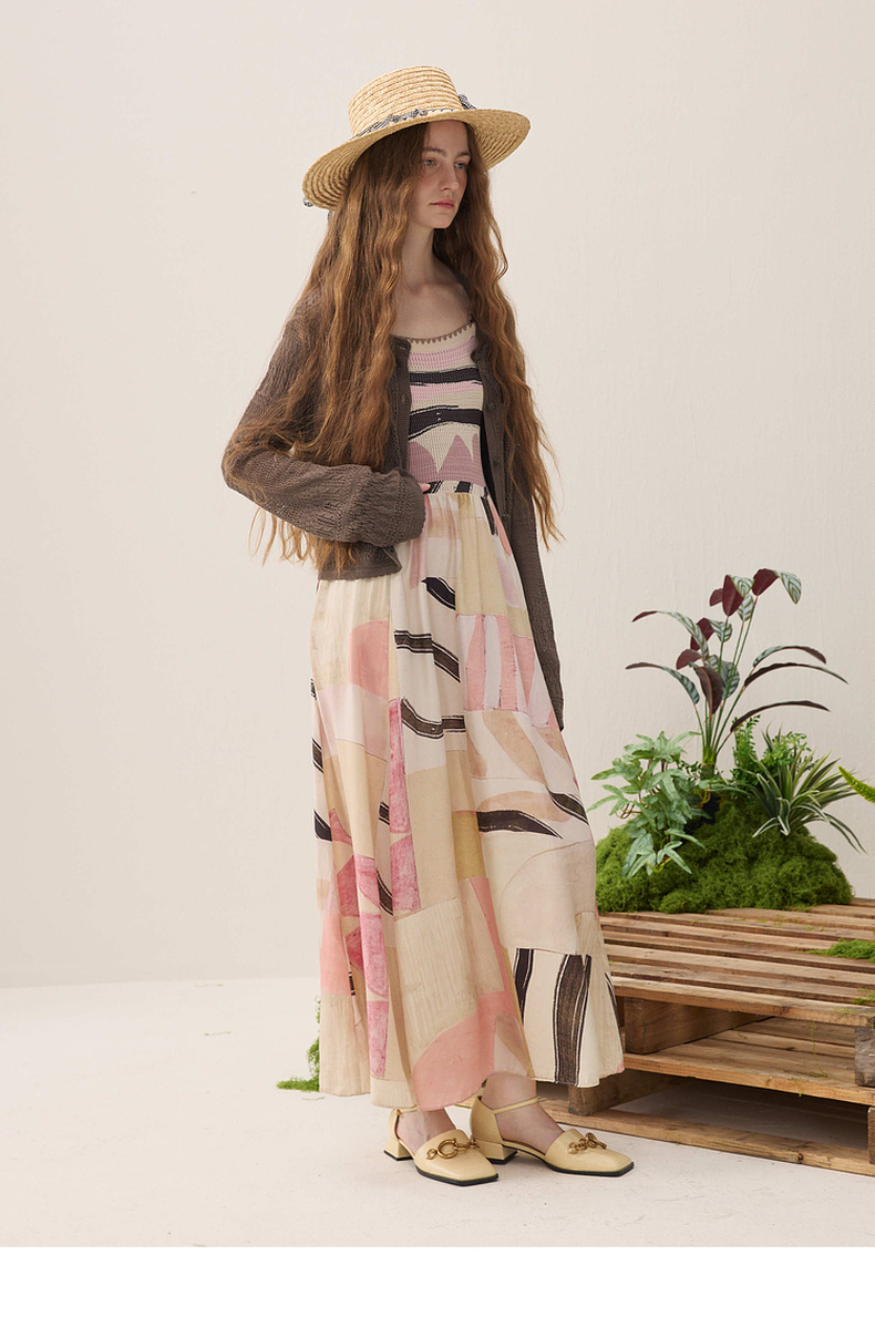 谜底牛仔连衣裙短袖2026春季新品做旧水洗H型拼接亲肤女261ML0044