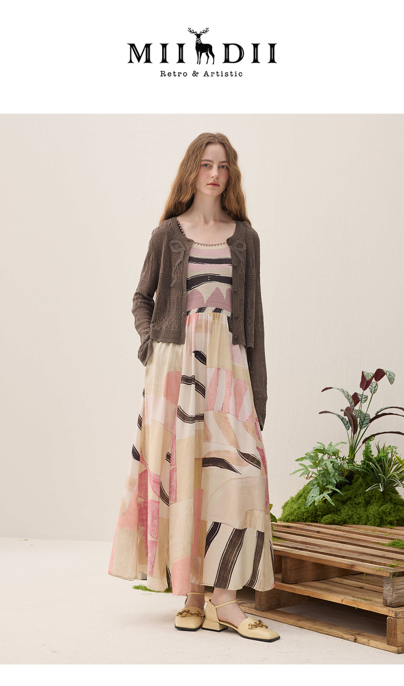 谜底格子连衣裙长袖2025年冬季新品复古立体花卉宽松女254ML1696