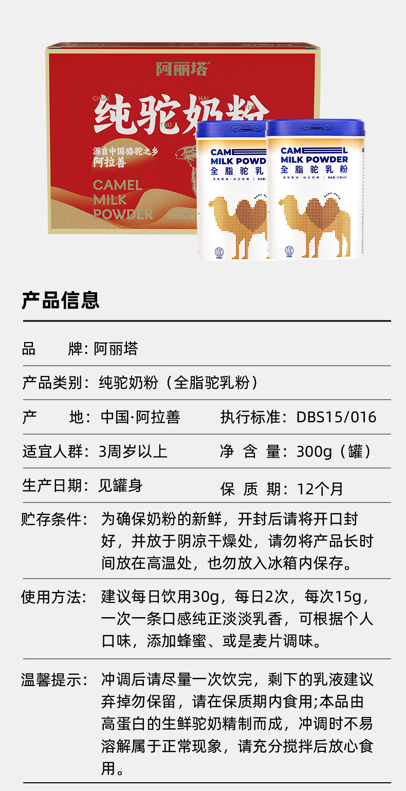 【18罐装】全脂驼奶粉300g(独立包装)x18