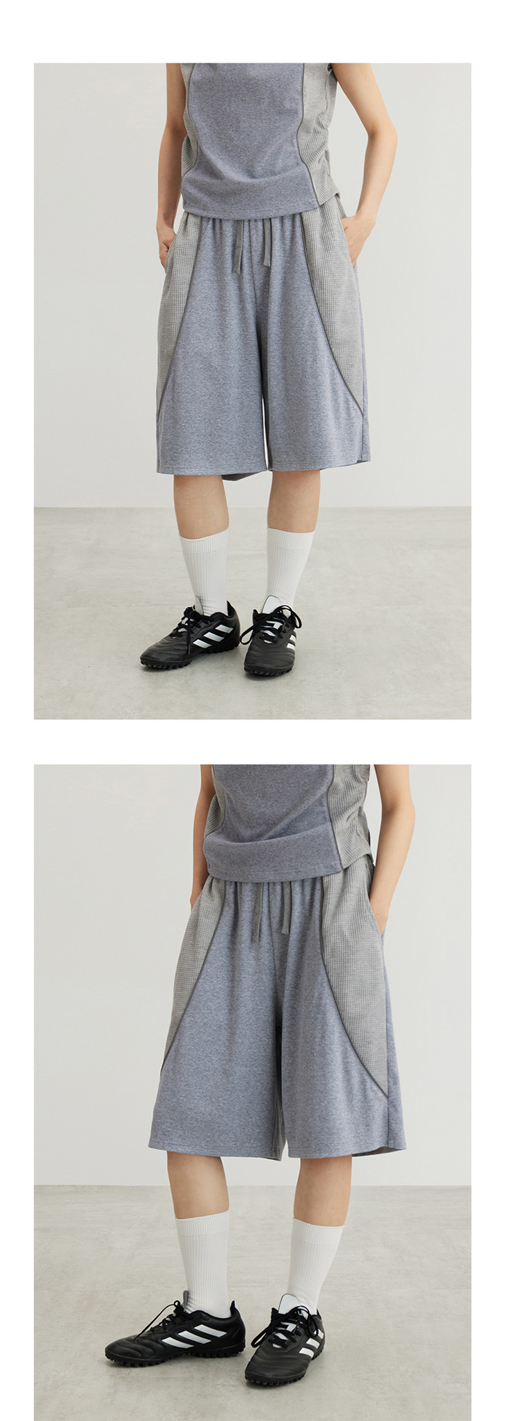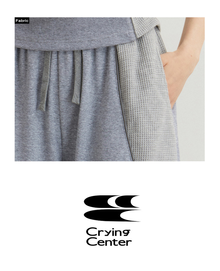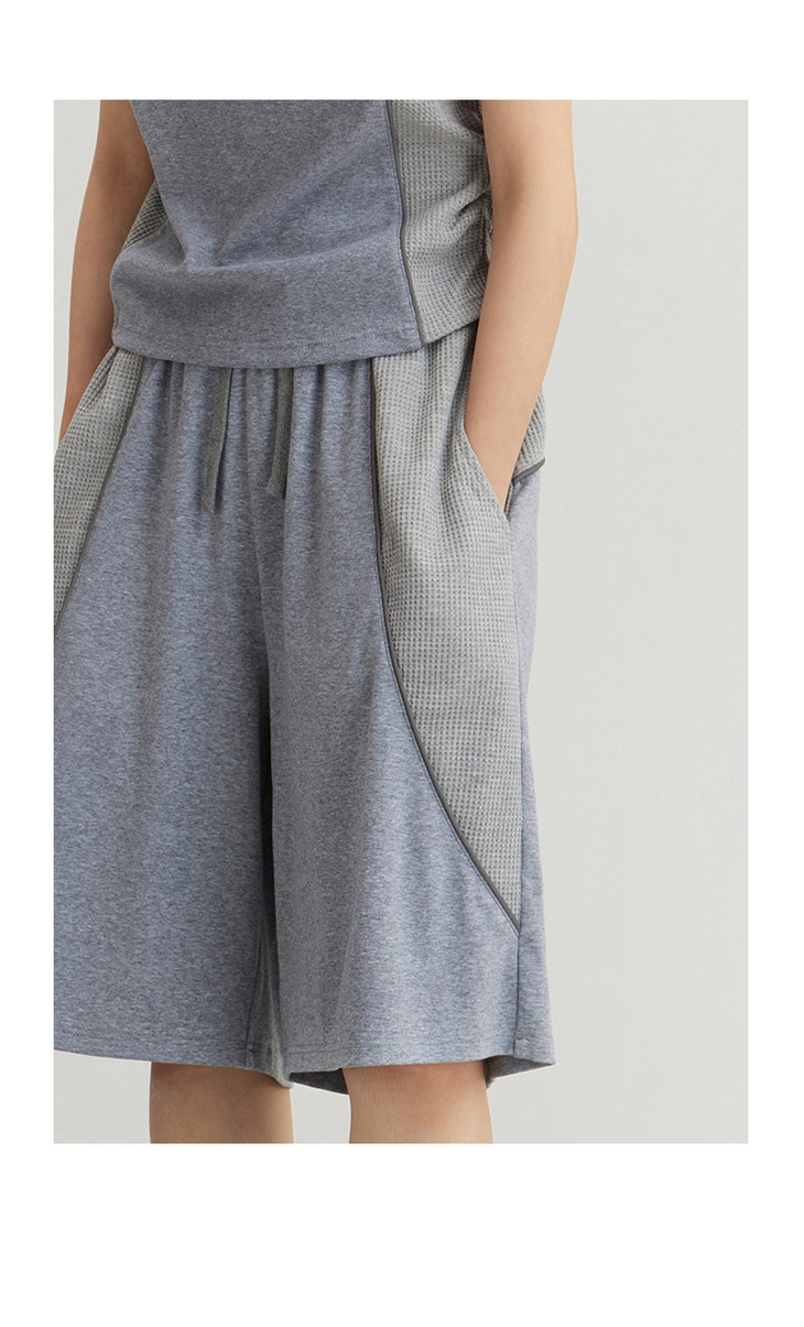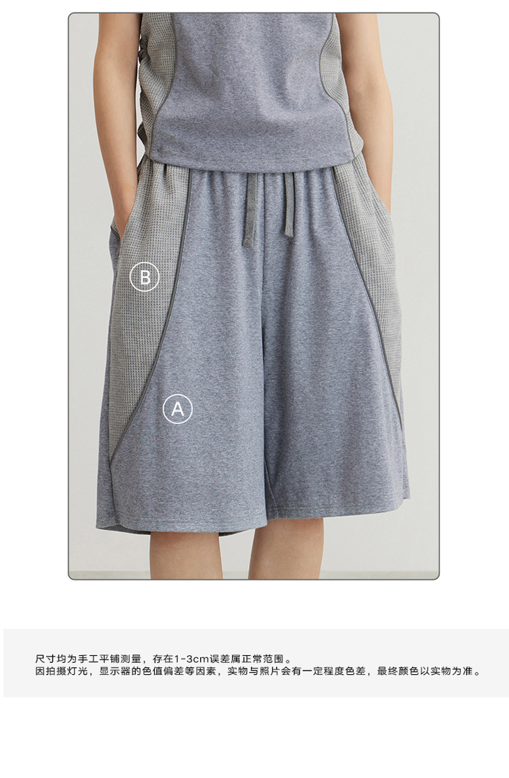 cryingcenter 华夫格拼接宽松舒适运动棉质短裤