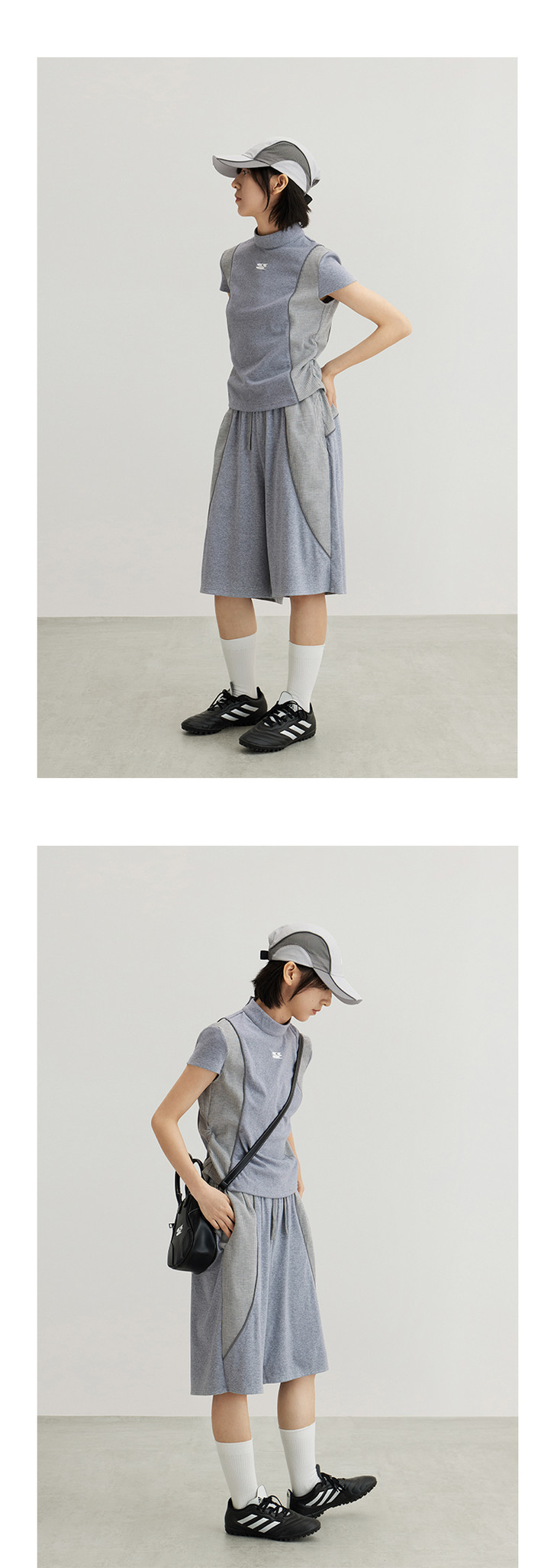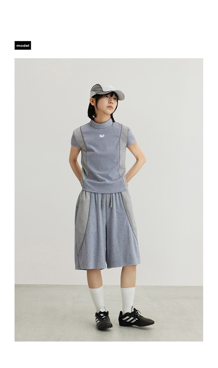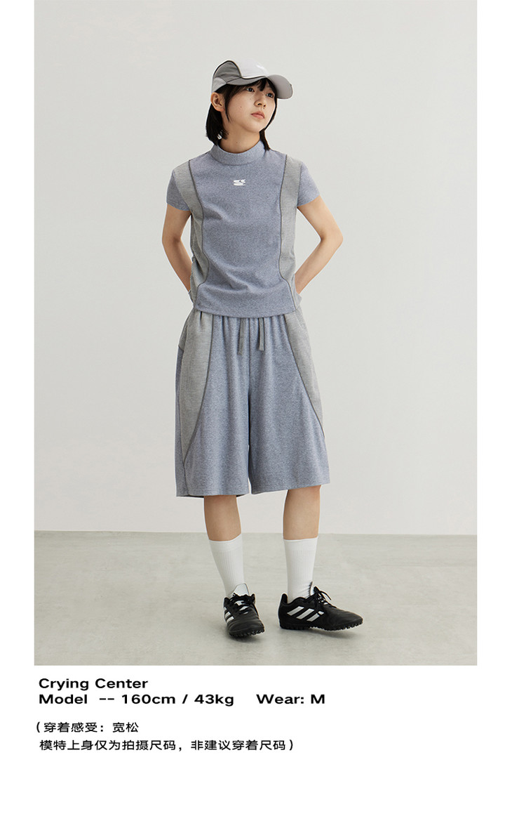 cryingcenter 华夫格拼接宽松舒适运动棉质短裤