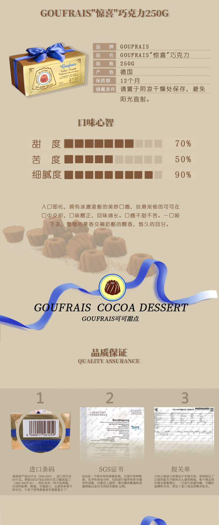 【高福瑞斯巧克力】巧克力天花板 丝滑浓郁 入口即化 口感醇正