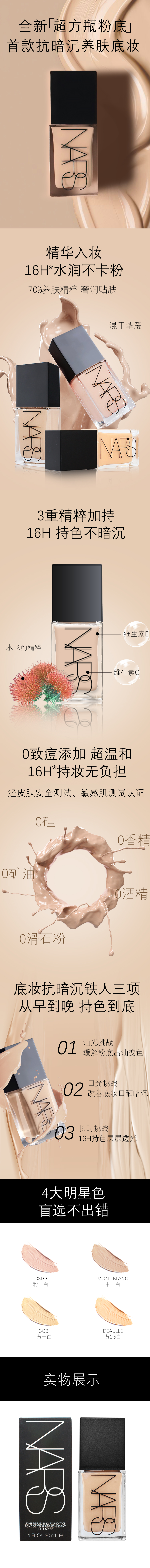 【保税仓】Nars娜斯超方瓶粉底液30ml 颜色分类L1OSLO粉调一白