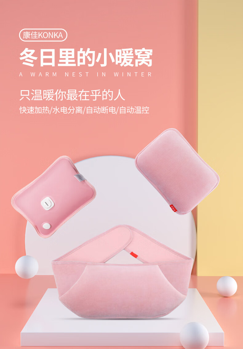 优选丨康佳(KONKA)电热暖手袋/暖手宝 KH8033 粉色暖腰带三件套