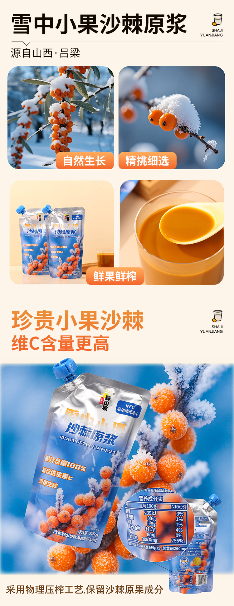 【吕梁野山坡沙棘原浆】雪中小果 野生沙棘 鲜果生榨 高VC原浆(2.10-2.23停发)