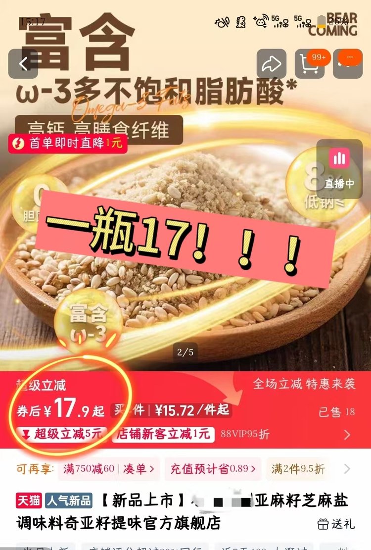 双12秒杀❗️❗️ 🔥💰9.9秒杀3瓶❗【亚麻籽芝麻盐】芝麻➕亚麻籽➕奇亚籽甄选三重营养,补钙补Omega-3促消化,咸鲜适口超下饭😋