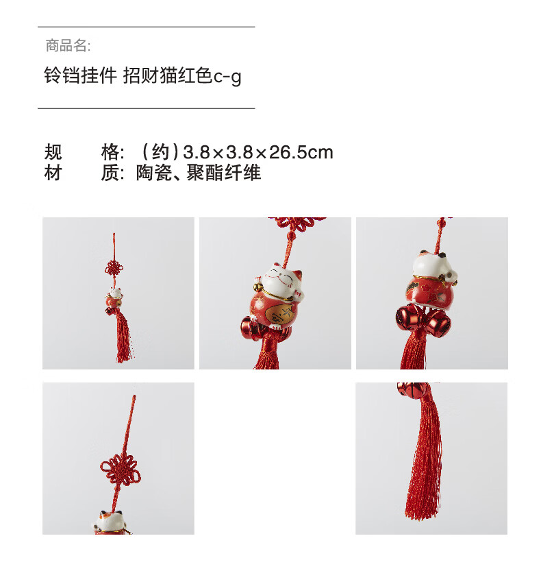 新年春节氛围装饰汽车铃铛挂件招财猫平安狮挂饰