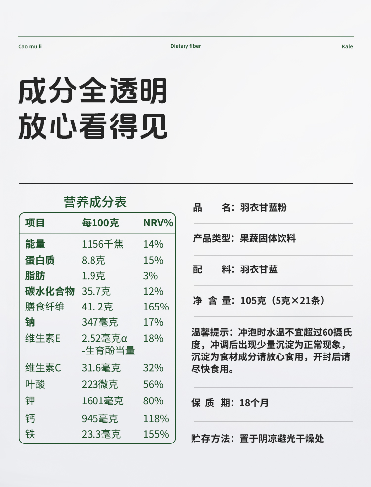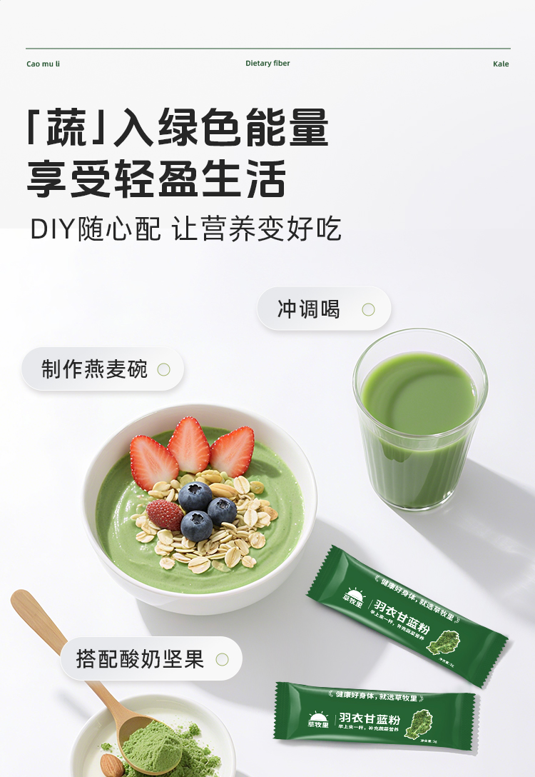 【买4盒赠1盒】草牧里 羽衣甘蓝粉 5g*21条/盒 早上来一杯补充蔬菜营养